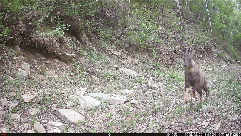 鲸偶蹄目牛科斑羚属哺乳动物,被列入《世界自然保护联盟濒危物种红色名录》,对原生性森林灌丛环境依赖度高,被称为“岩壁舞者”。2025年9月,五台山景区首次用红外相机记录到其踪迹,印证五台山山地森林生态系统的持续改善。