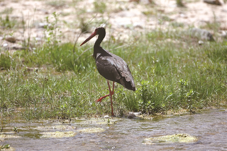 鹳形目鹳科鹳属鸟类,“山西四大旗舰物种”之一,对水质和栖息地要求极高,被称为“鸟中大熊猫”。2025年国庆前夕,清水河流域拍摄到黑鹳影像,其成为五台山生态向好的“空中名片”。