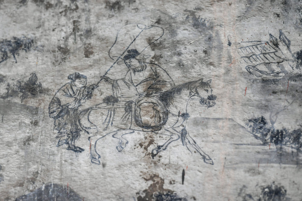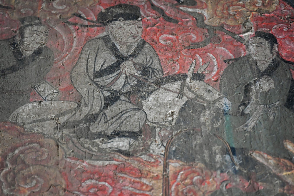 这是在山西省高平市仙翁庙拍摄的壁画中的马。