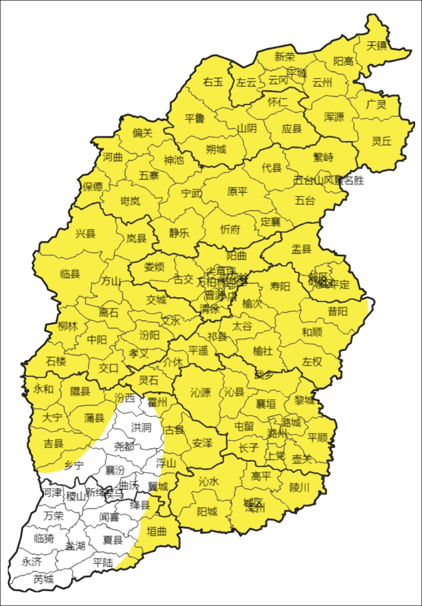 2026年01月25日08时58分,山西省气象台发布道路结冰黄色预警,预警区域为大同市、朔州市、忻州市、吕梁市、太原市、晋中市、阳泉市、临汾市、运城市、长治市、晋城市。