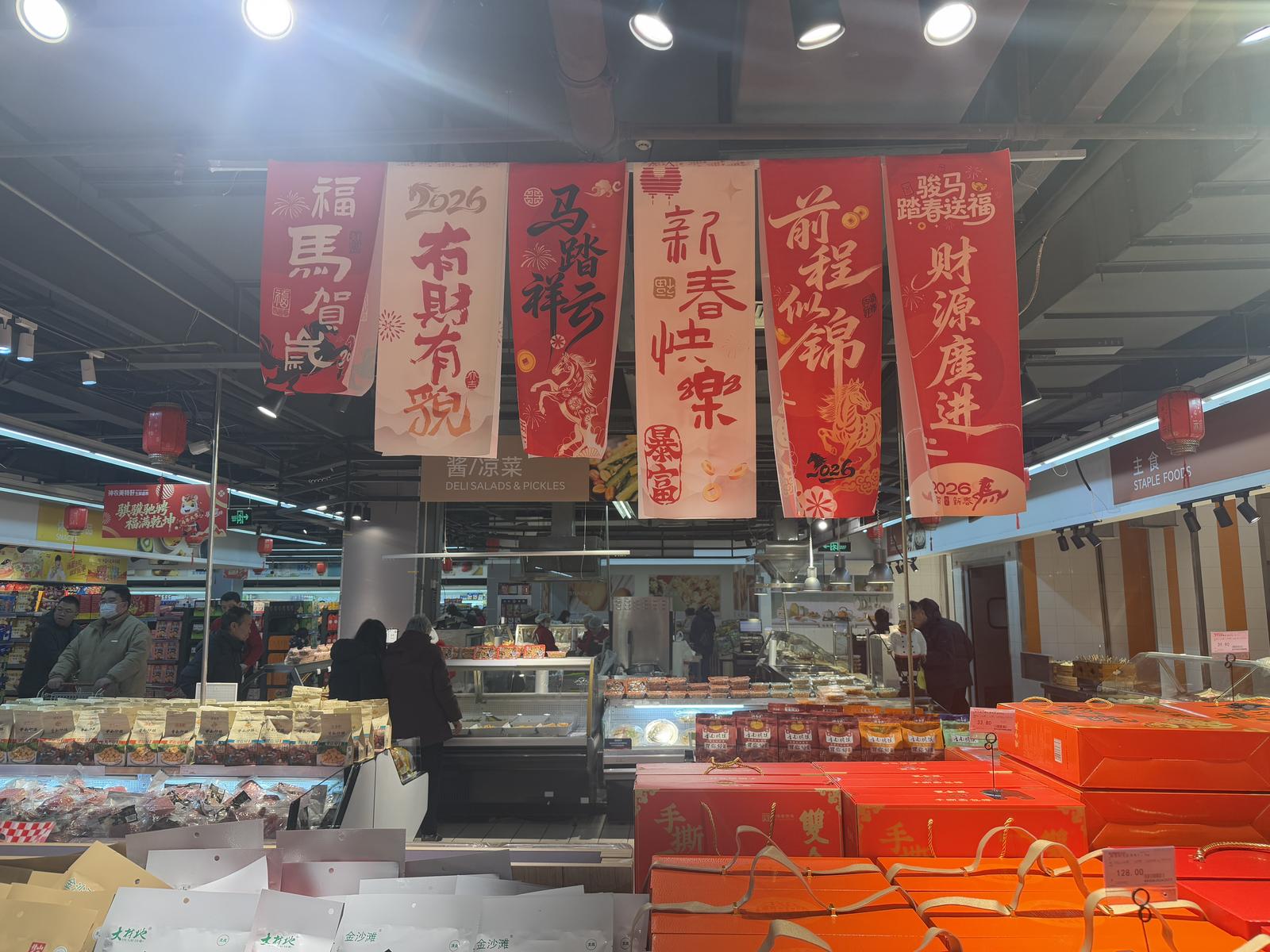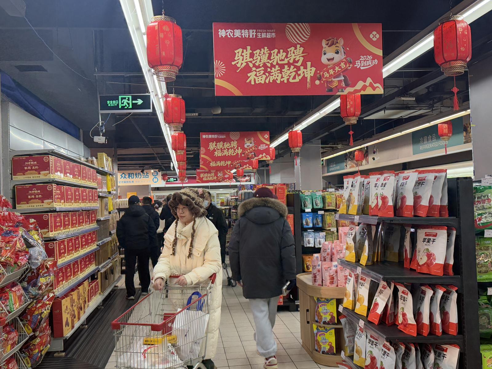 记者走访多家门店,实地感受开业热度。“价格实惠,种类也多!”“店里布置得红红火火,年味十足。”……在各家门店中,前来选购的市民络绎不绝。