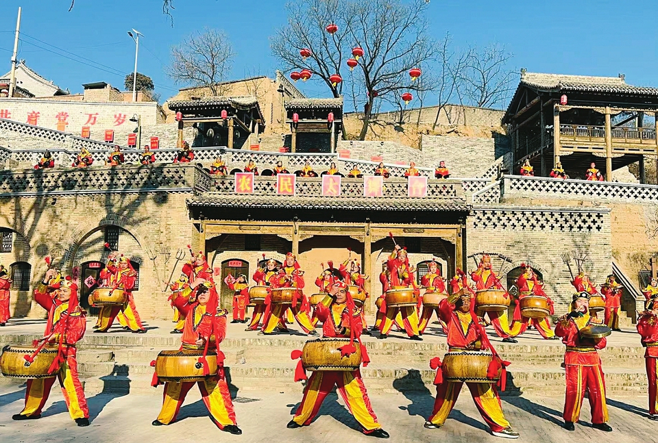 “冯南垣上过大年”活动中的威风锣鼓表演。