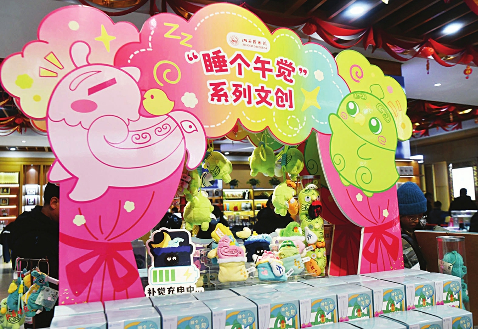 当鸟尊裹着明代洪武金锭造型的睡袋,懒洋洋地躺在C位货架上,山西人“爱午睡”的热梗被具象化。这套以“老祖宗都要午睡”为主题的毛绒玩具,成为山西博物院文创门店近期最抢手的单品,单月销量突破万件。