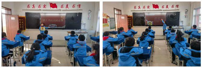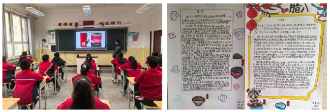 西贾小学围绕“腊八节”开展了一系列主题实践活动,学生化身“文化小讲师”,借助多媒体课件分享腊八节的起源传说、各地习俗与诗词典故。随后,大家以小组为单位,结合课件所学内容,动手制作腊八节主题手抄报,在文化探究与动手体验中感受传统节日的魅力。