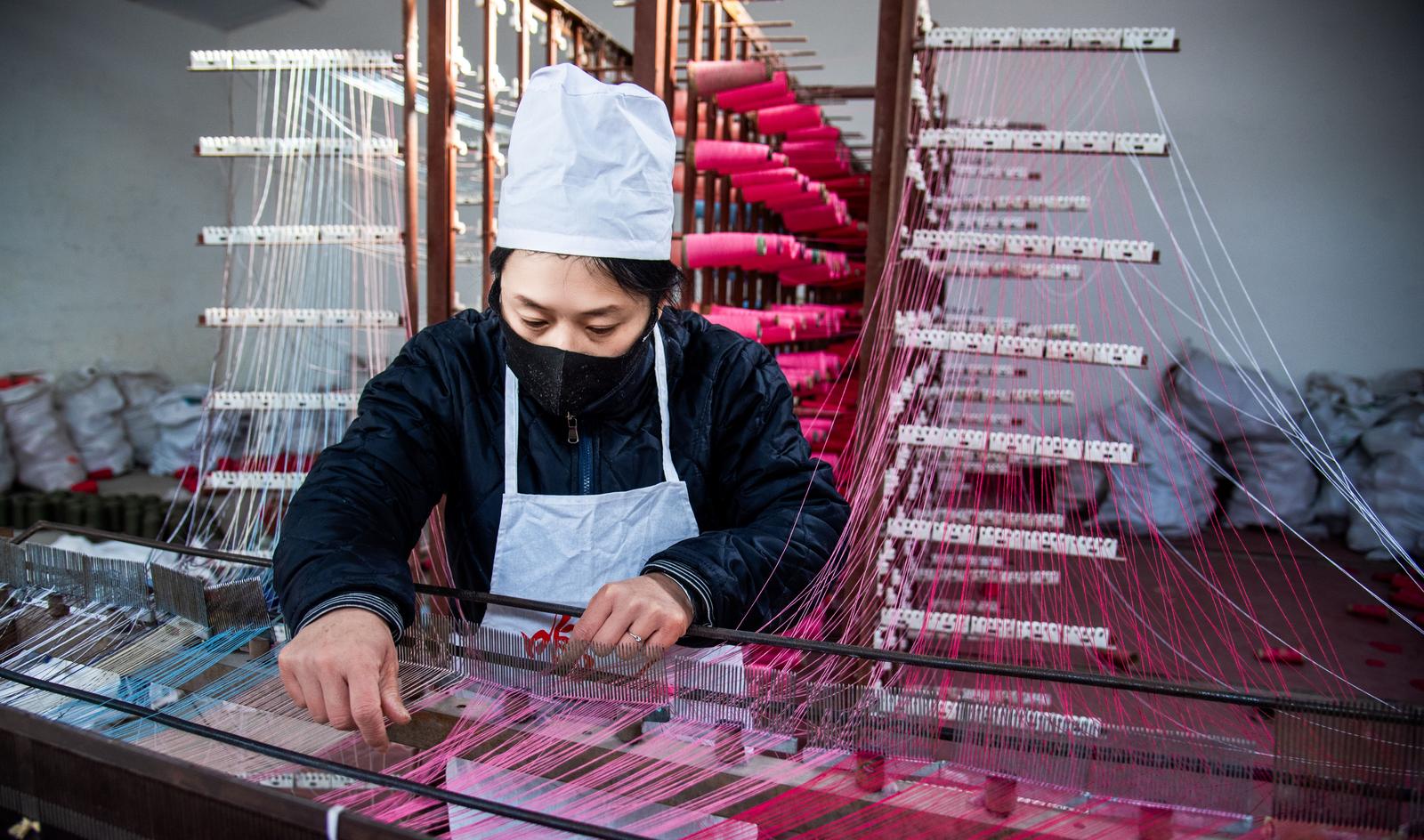 1月22日,在霍州市山西鸣梦老粗布纺织品股份有限公司生产车间内,一派繁忙景象,女工们加班加点赶制订单,力求将这份来自山西的非遗温暖送达千家万户。