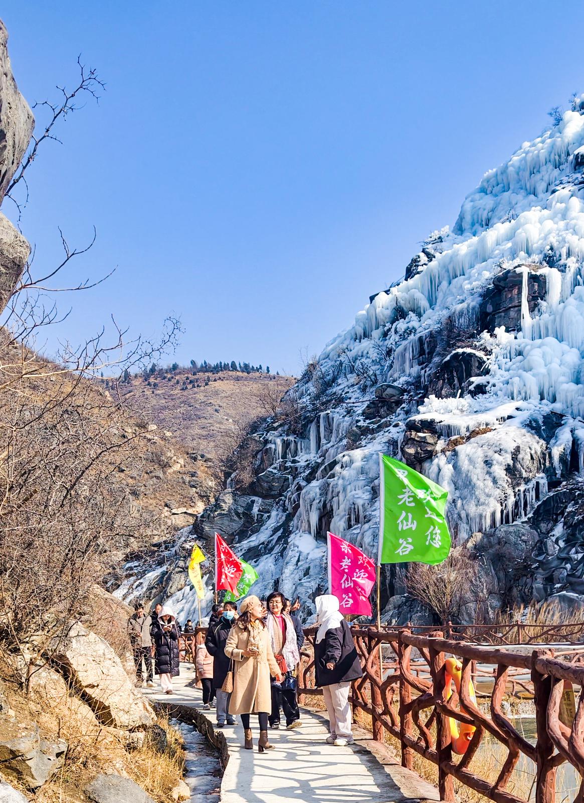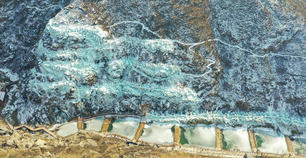 1月24日,运城市夏县南大里乡果老仙谷景区,“回家·过年”首届冰雪中国年活动启动。众多游客来到这座国家地质特征鲜明的山沟,共同观赏冬日冰雪胜景。