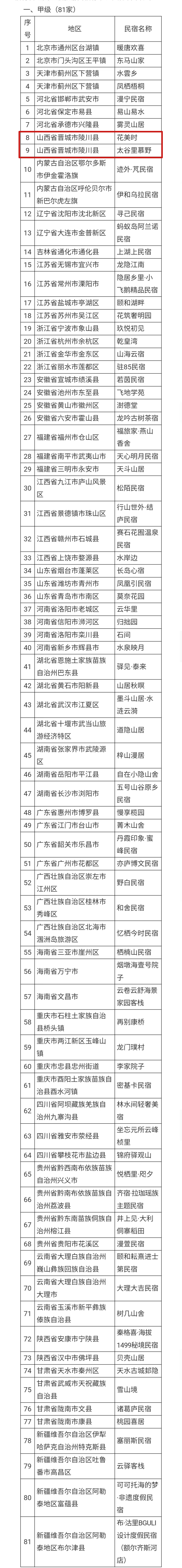 山西获评全国甲级旅游民宿2家