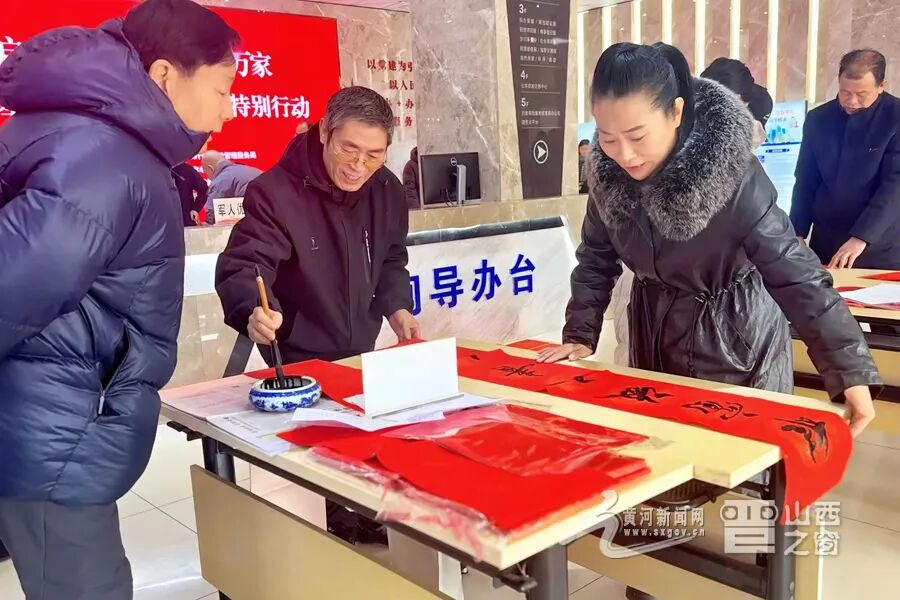 图为高平市政务大厅内书法大师免费为市民写对联送祝福。高平市委宣传部供图