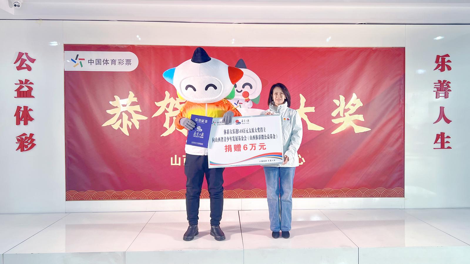 山西大乐透大奖得主捐赠6万元支持青少年公益