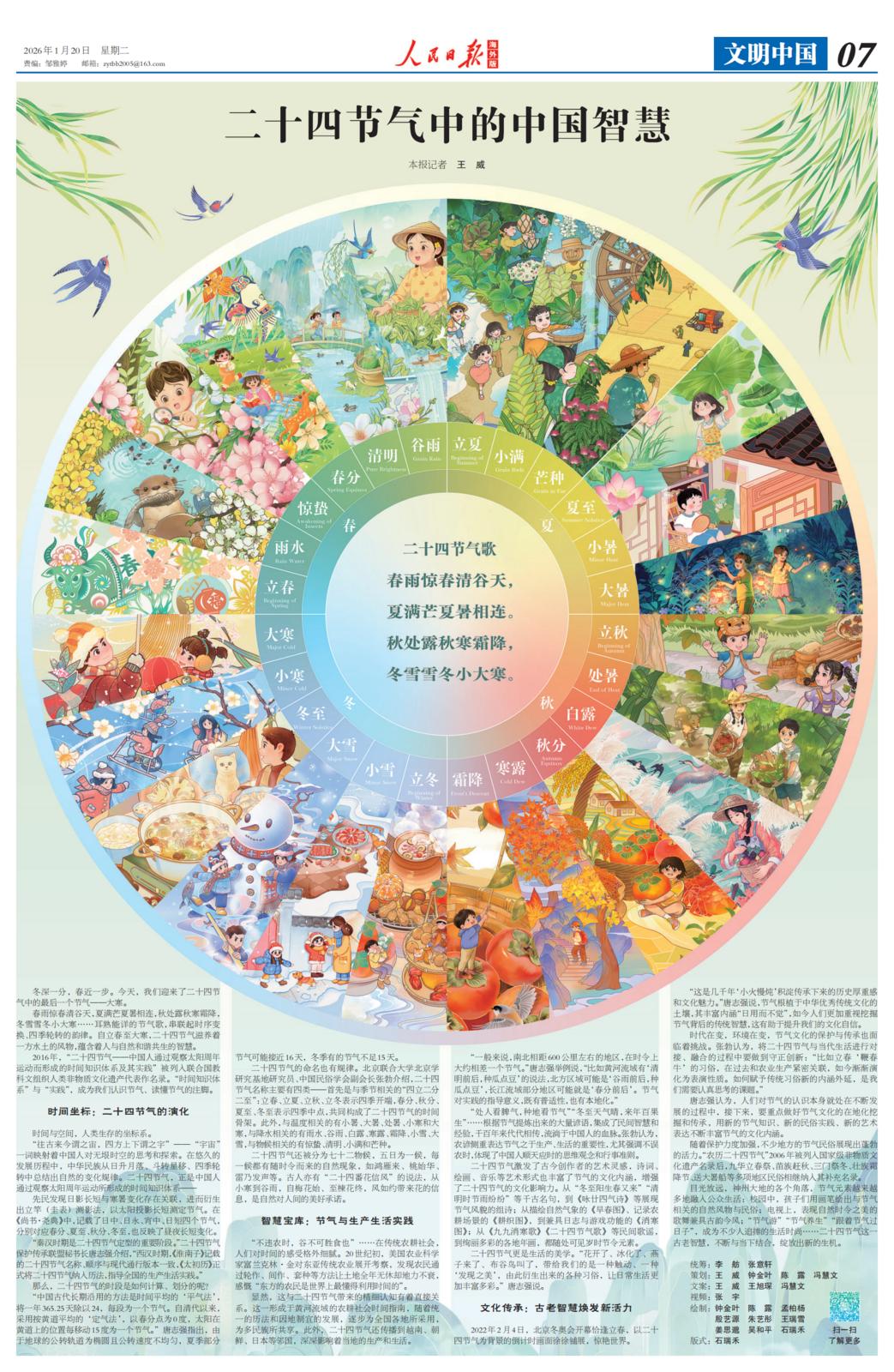 2016年,“二十四节气——中国人通过观察太阳周年运动而形成的时间知识体系及其实践”被列入联合国教科文组织人类非物质文化遗产代表作名录。“时间知识体系”与“实践”,成为我们认识节气、读懂节气的注脚。