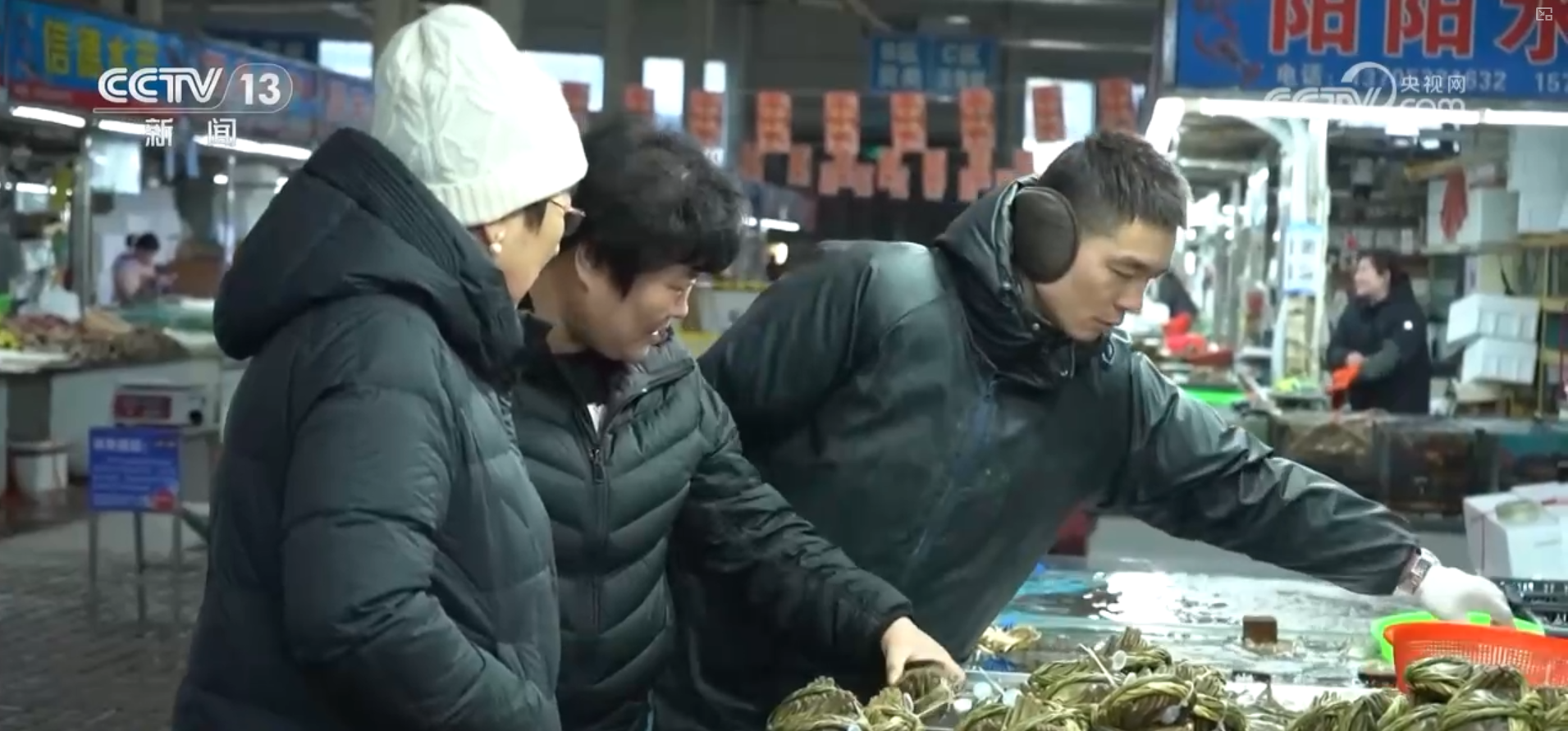 春节临近,山东青岛海鲜市场迎来采购高峰。市民们忙着为自家餐桌和返乡行程挑选新鲜海产,市场一派繁忙。