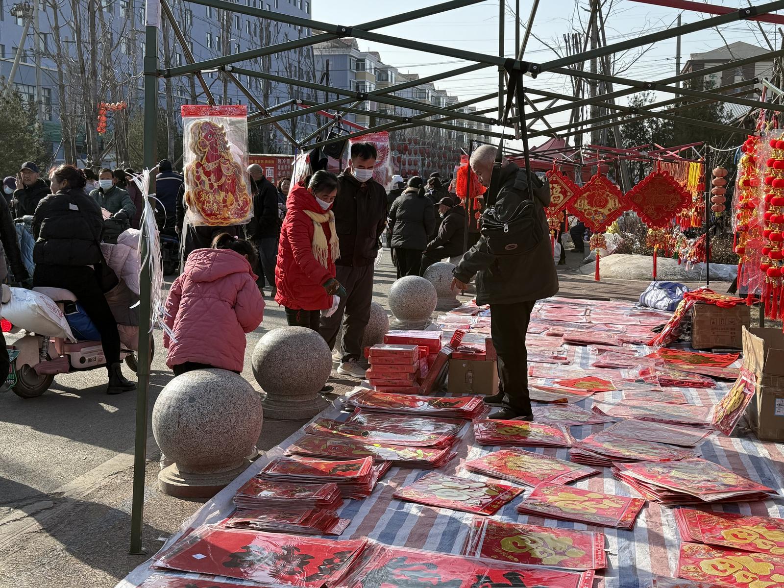 “快过年了,我特意来选些车上贴的对联和家里的窗花。”一位正在挑选窗花的和女士笑盈盈地说,“在这里跟着朋友一起边逛边聊,买买东西,感觉特别有年味儿。”