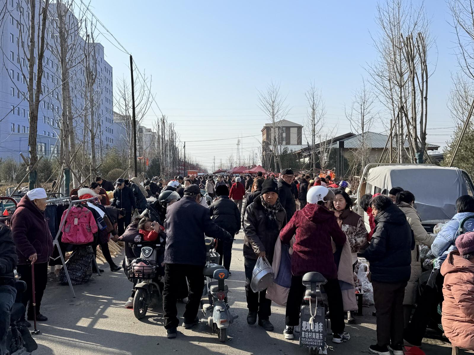 上午八时,市场开始热闹起来。春节饰品摊位,火红的春联舒展着吉祥寓意,烫金福字在光影下泛着温润光泽,精巧窗花裁出百态年味,吉祥中国结垂挂摇曳,各式物件堆叠错落,看得人眼花缭乱。不远处的冰糖葫芦摊位前,晶莹剔透的糖壳裹着饱满果粒,甜香萦绕间,总有孩童驻足流连。服装摊位前,往来顾客细细挑选着新年衣裳,喧哗声、询价声、爽朗的笑语声交织缠绕,奏响了冬日里最鲜活的乐章。
