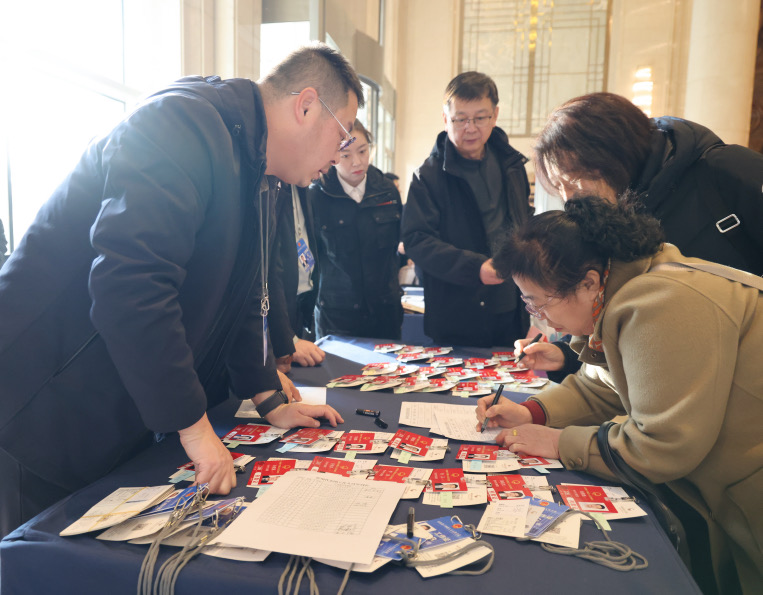 在驻地报到处,代表委员们在工作人员的引导下,井然有序地签到、登记、领取会议材料。许多代表委员在完成手续后,就各自关注的经济社会发展热点,进行着会前的交流与探讨。他们深入基层一线,将调研所得的社情民意,转化为一份份关乎发展与民生的务实建议。
