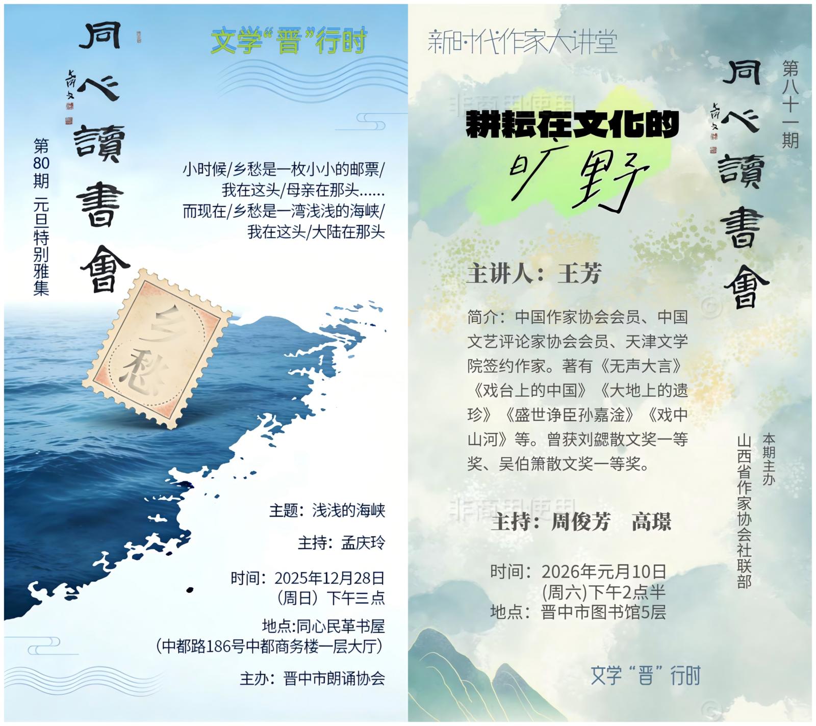 2026年伊始,晋中同心读书会驿站接连推出由山西省女作家协会主办的“她世界的体验与表达”和山西省作协社联部主办的“耕耘在文化的旷野”等主题图书活动,在文学爱好者中引发强烈共鸣。