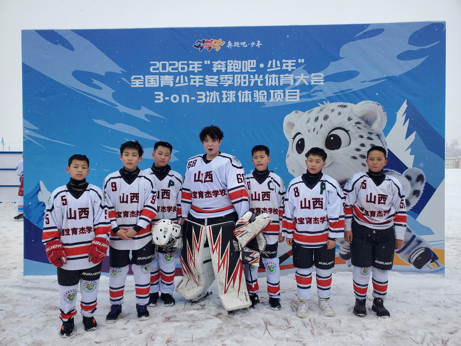 1月31日,在2026年“奔跑吧少年”全国青少年冬季阳光体育大会3对3冰球比赛中,山西通宝育杰学校冰球队以3比2战胜云南队。此次大会于1月28日在新疆乌鲁木齐奥林匹克体育中心体育馆举行,全国34个代表团的862名青少年、140名教练员参与大会。山西通宝育杰学校14名球员代表山西省参赛。大会设置展演展示、教育活动、项目体验三大板块。项目体验遵循“安全第一”原则,以“淡化名次、奖牌,突出趣味性”为导向,兼顾专业性与观赏性。