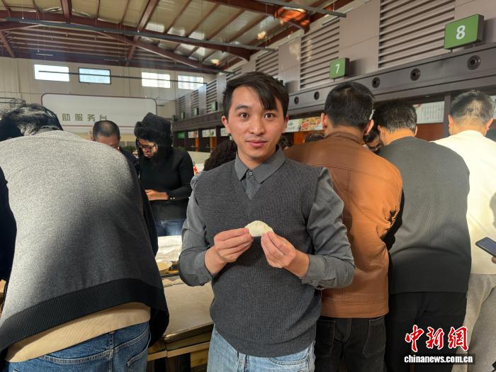 来自老挝的留学生王波展示自己包的饺子。