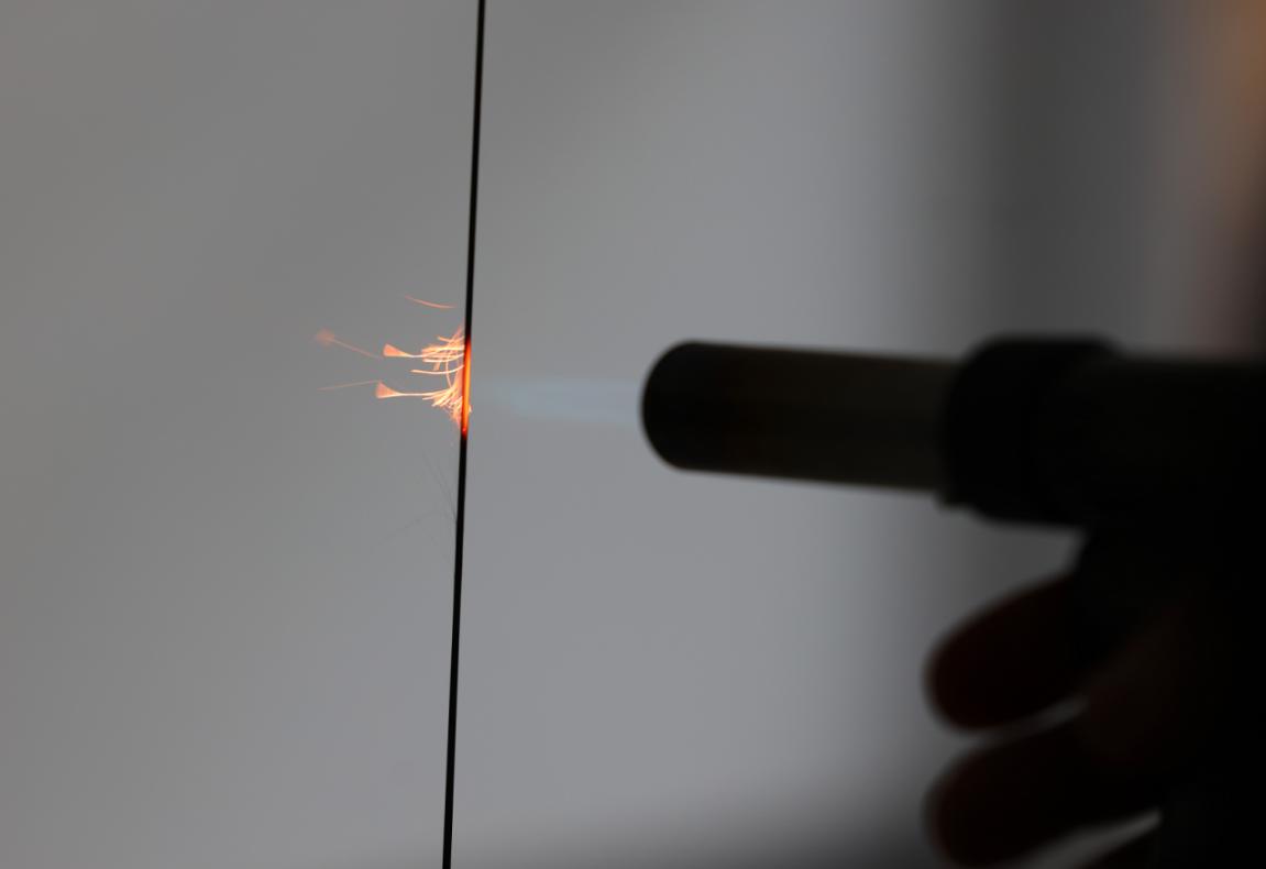 1月10日,工人在山西省大同市一处实验室演示碳纤维耐火烧测试。 朱兴鑫 摄