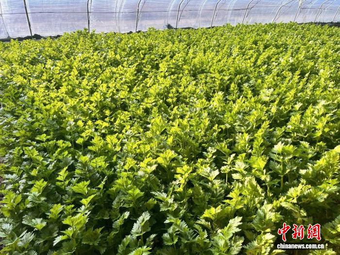 种植户张丽萍的蔬菜大棚,整齐的菜畦间,芹菜郁郁葱葱。 张媛 摄