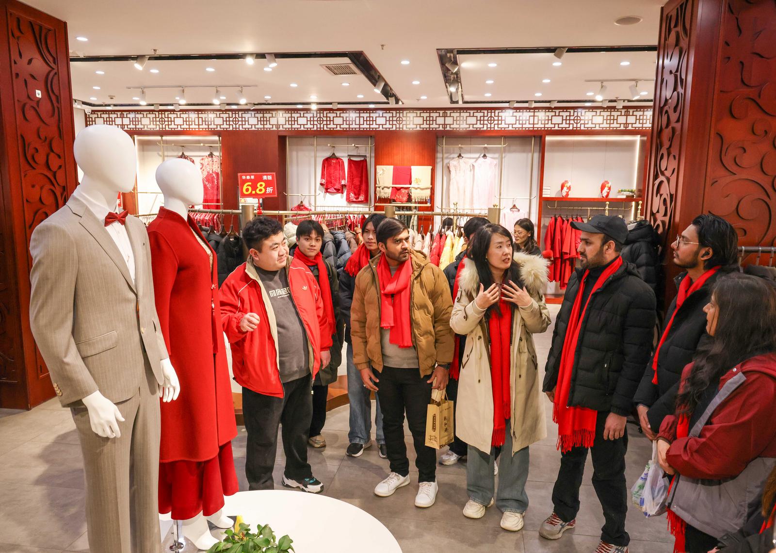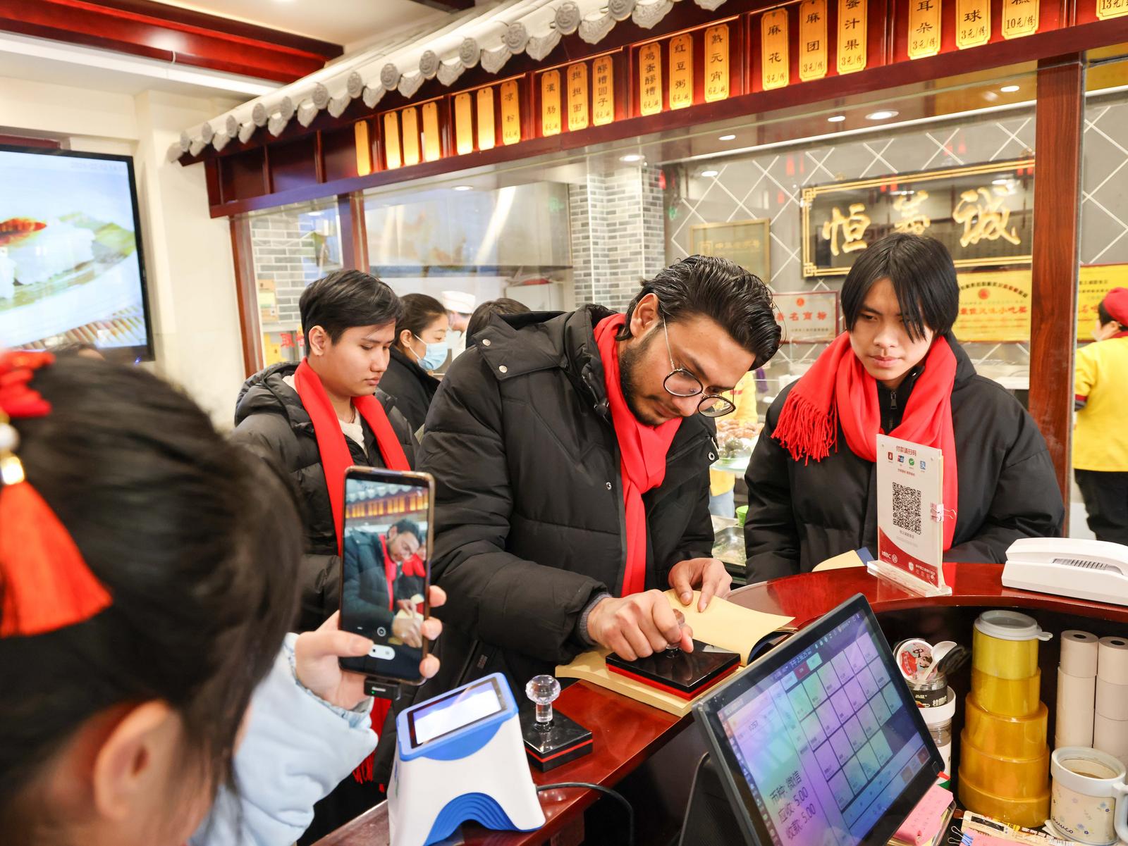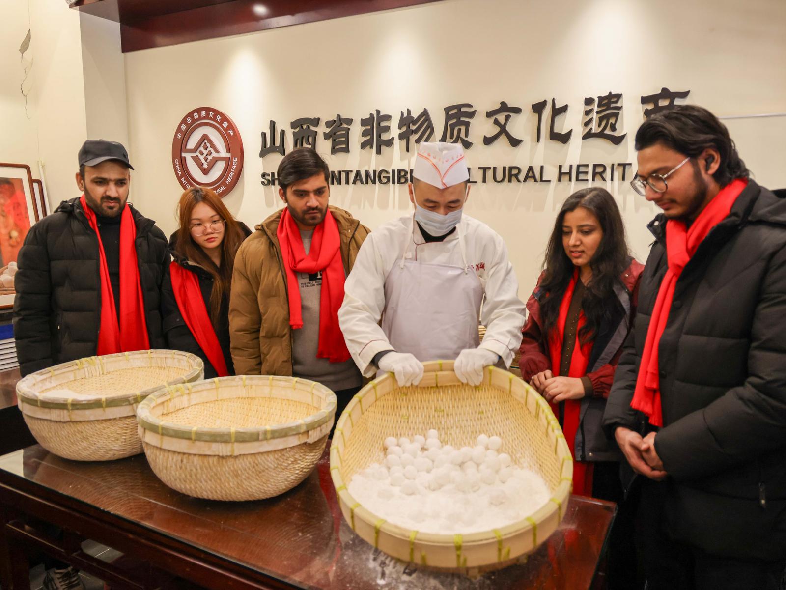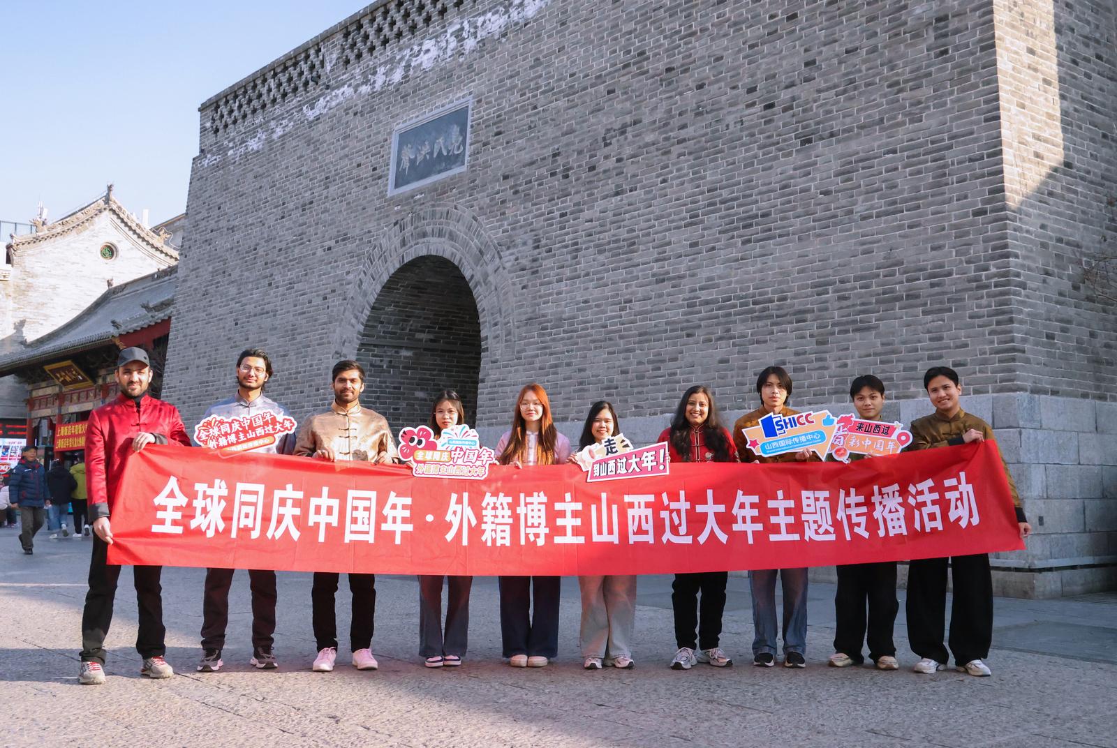 2月12日,“全球同庆中国年——外籍博主山西过大年”主题传播活动第二站走进太原钟楼街,来自山西师范大学、太原科技大学的10余名留学生及外籍博主沉浸式感受山西年味儿。