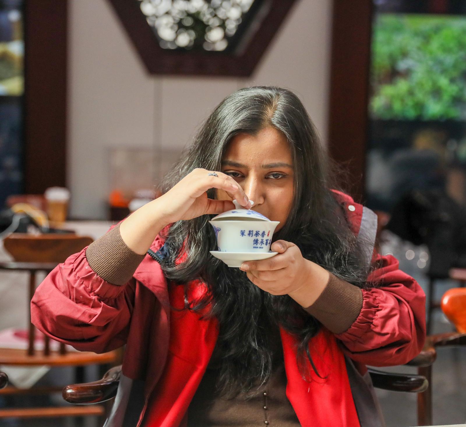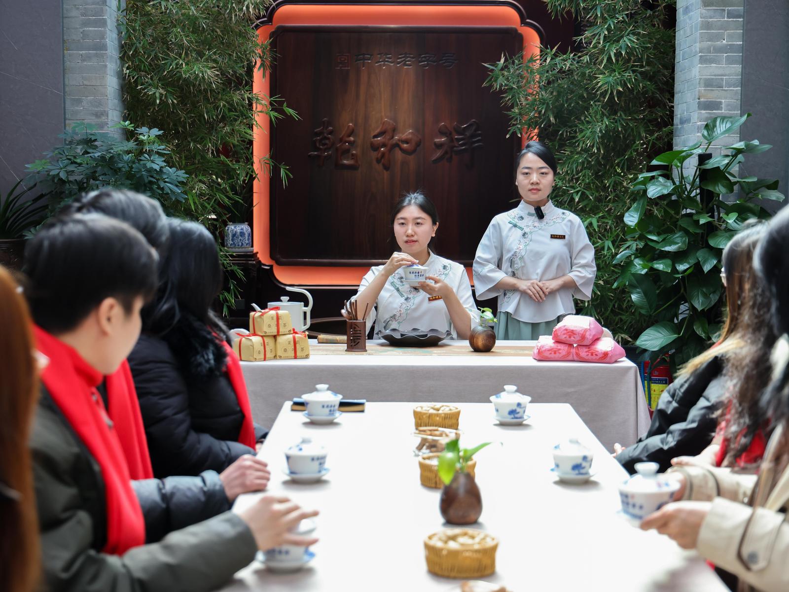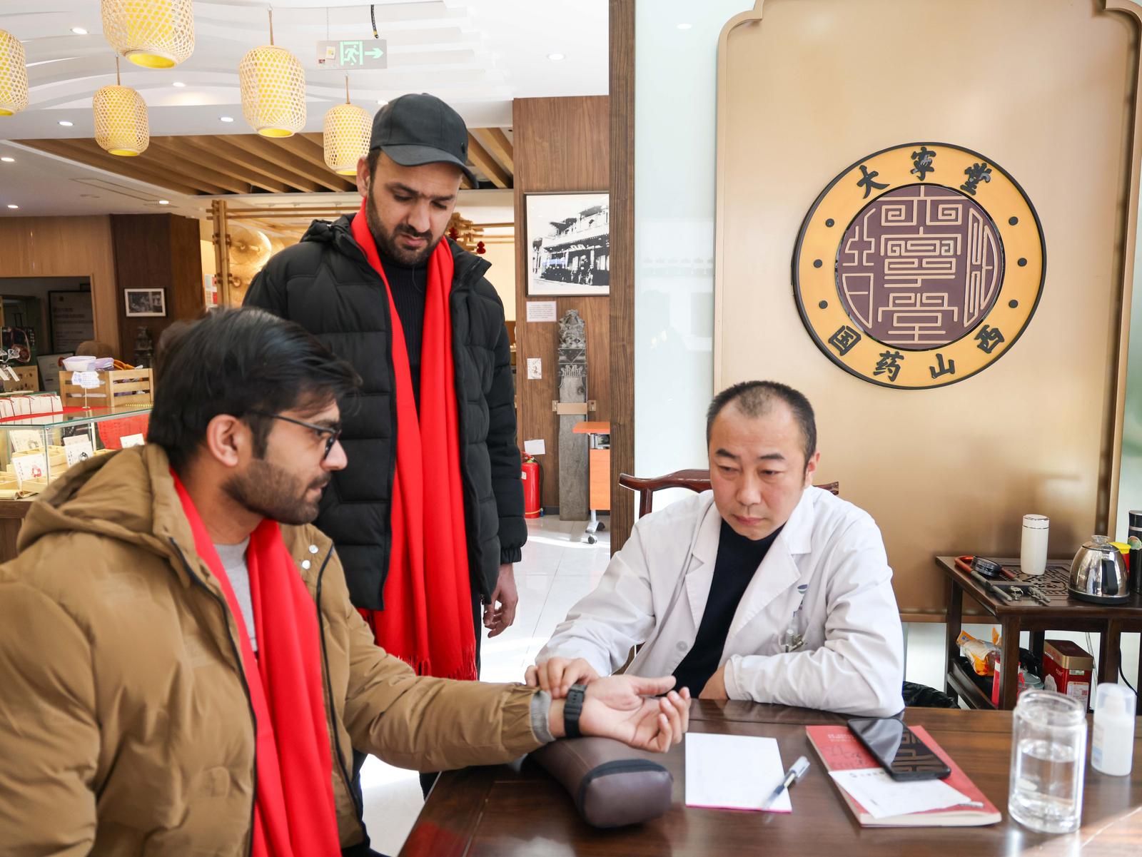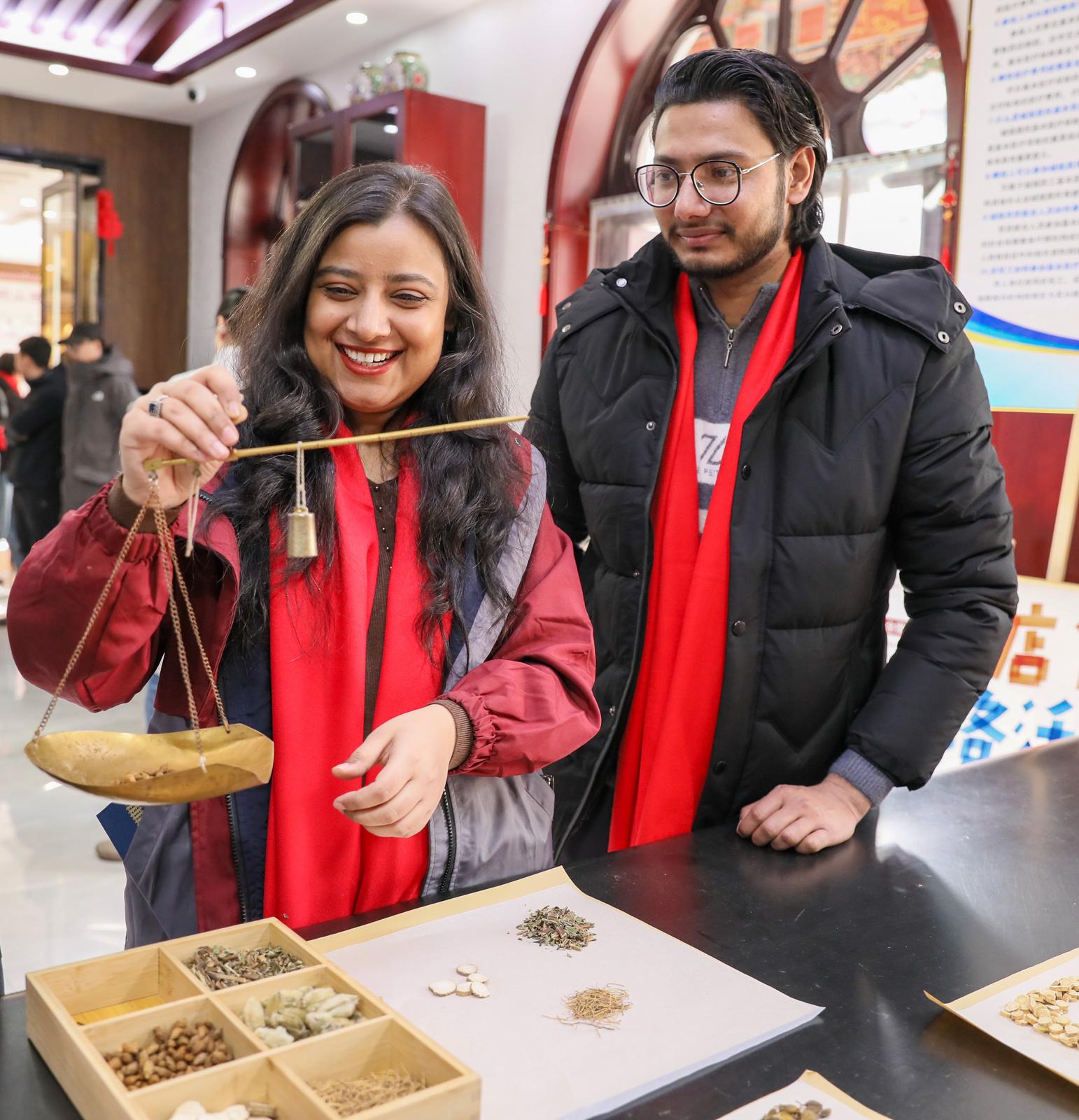 在大宁堂,坐堂医师为留学生进行把脉问诊。并在药师指导下制作中药香囊,了解中药文化;走进乾和祥,参观百年茶庄博物馆,了解晋商茶道故事。茶艺师现场教留学生盖碗茶礼仪,品尝盖碗茶;在省级非遗老鼠窟元宵作坊了解老鼠窟历史文化,并在师傅指导下体验“手摇元宵”;在华泰厚中华老字号服装店,了解旗袍文化,在裁缝师傅指导下亲手制作盘扣;来到晋礼,在讲解员带领下,了解山西特色非遗文创礼品。体验AR冰箱贴的裸眼3D效果,感受科技赋能下的山西新故事。