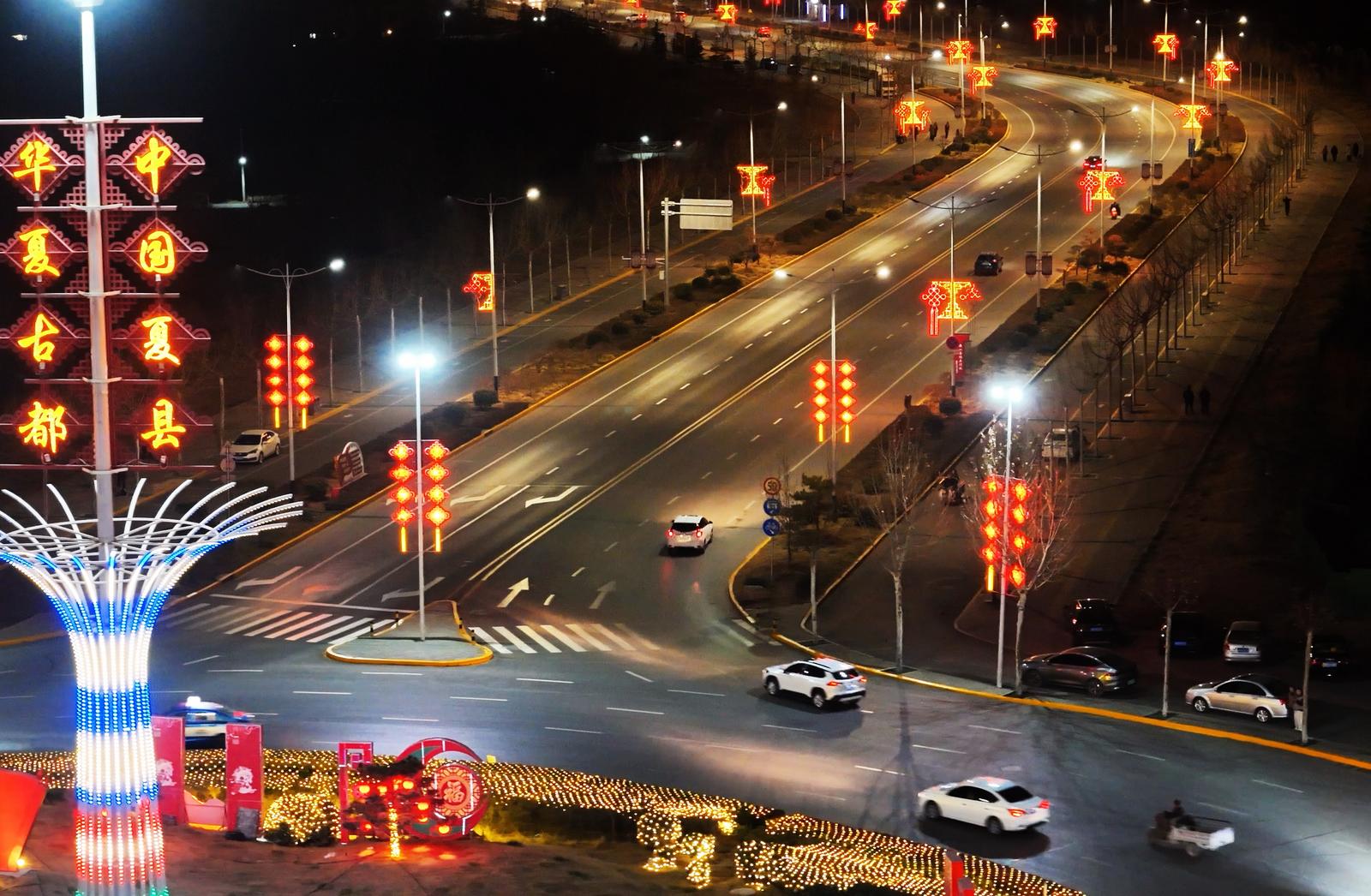 2月13日,夜幕降临,华灯初上,运城夏县处处洋溢着祥和的新春氛围。张秀峰 摄