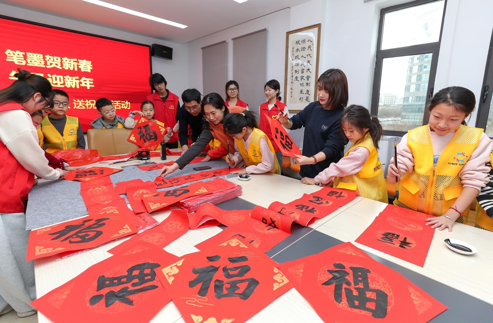 2月10日,临汾市尧都区社区书法爱好者和少年儿童书法爱好者联袂“献艺”。 闫锐鹏 摄