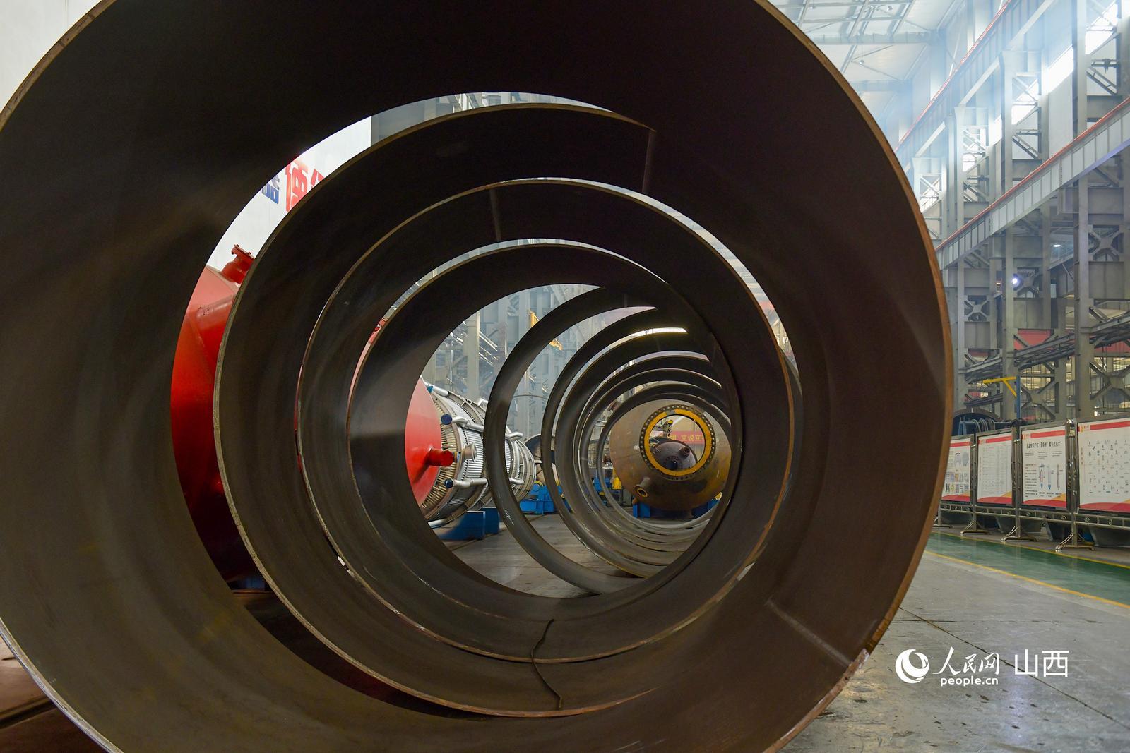 潞安化工机械(集团)有限公司生产车间内存放的晋华炉部件。人民网记者 焦搏文摄