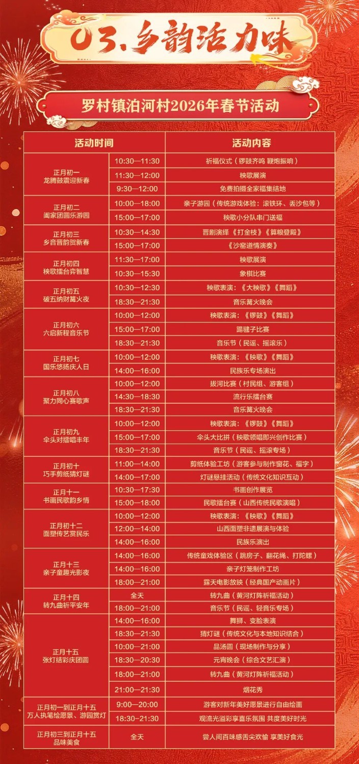 从正月初一起,村村有活动、处处有年味,邀您共赴一场有情、有味、有乐、有韵的团圆之旅。