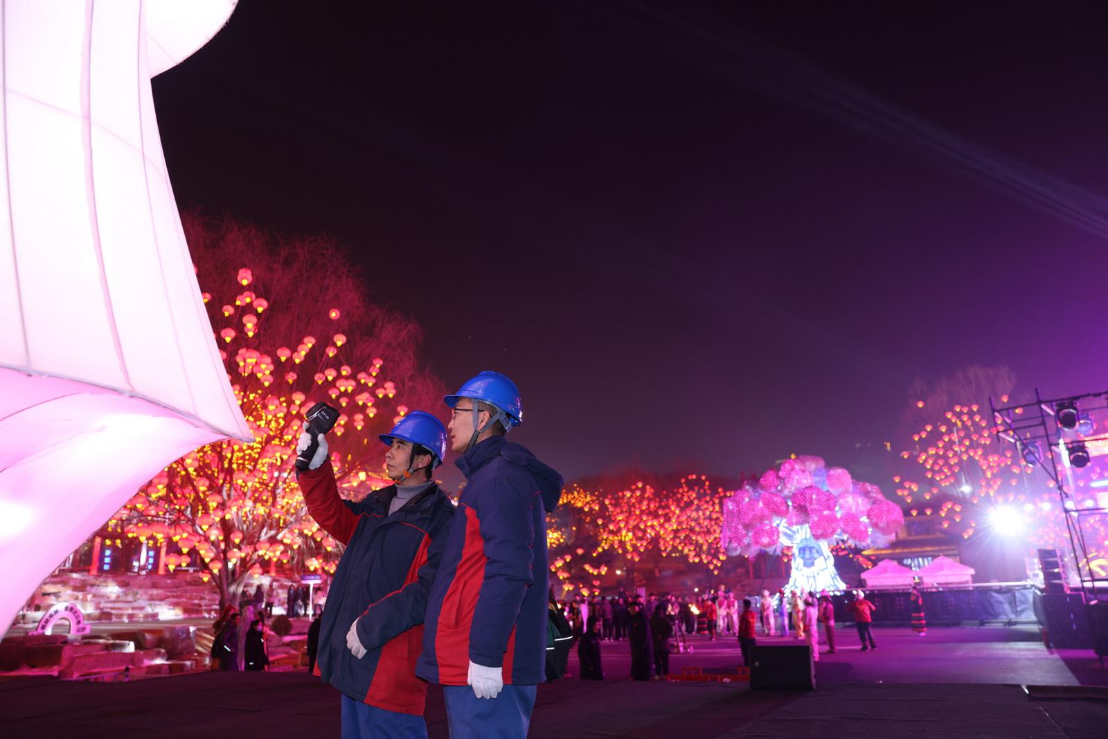 “打铁花演出需要灯光、音响精准配合,对供电稳定性要求极高,瞬时功率峰值能达到普通演出的3倍,开关触点最容易发热。”马冲的话语被舞台音响发出的锣鼓声淹没。他麻利地从工具包里掏出手电筒,再次对准接线端子,眯着眼仔细查看。这是他和老张今天第3次巡检。为了应对春节期间上万人次的客流,马冲所在的北石店供电所每天都分组对小镇开展多轮特巡, 8名员工分成4组,从开园到闭园轮班值守,路远的住在所里,几天才能回一次家。