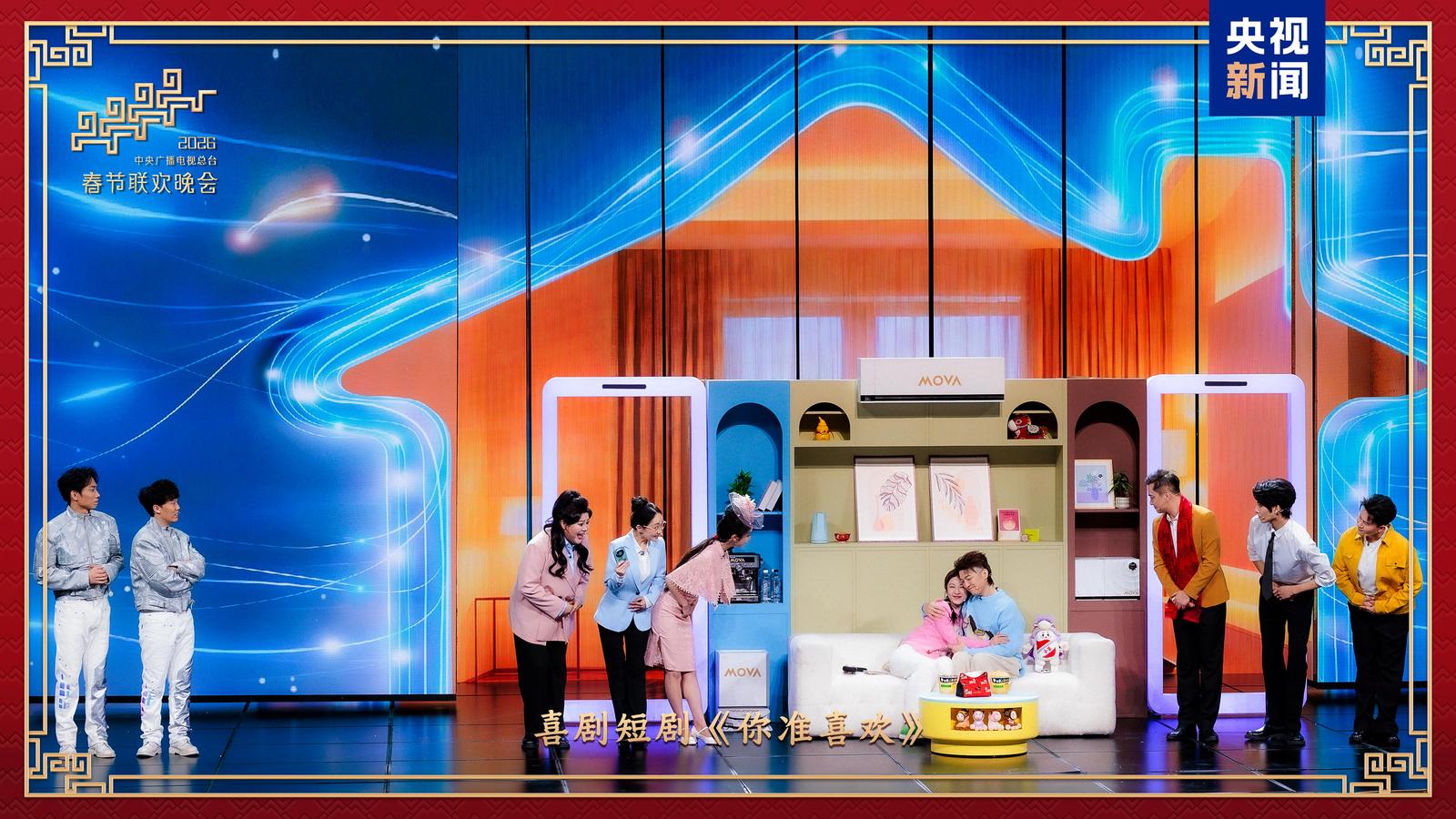 蔡明与王天放带来小品《奶奶的最爱》,聚焦机器人融入家庭生活场景,笑声与误会交织中藏着祖孙间最真挚的爱与惦念。喜剧短剧《你准喜欢》用轻松诙谐的方式演绎数字时代“越刷越上头”的状态,引发对社交媒体产品“有意思”和“有意义”的思考。