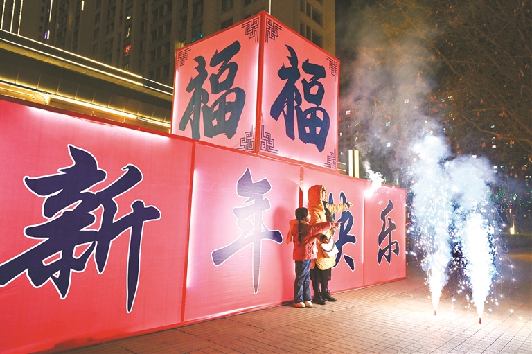 2月16日除夕,长治市上党区街头,市民欢庆新春到来,城市处处洋溢着喜庆的节日氛围。山西日报记者 杨晨玉摄