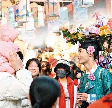 2月17日,在临汾市尧庙广场,第27届正月庙会活动现场游人如织。胡澍泽摄