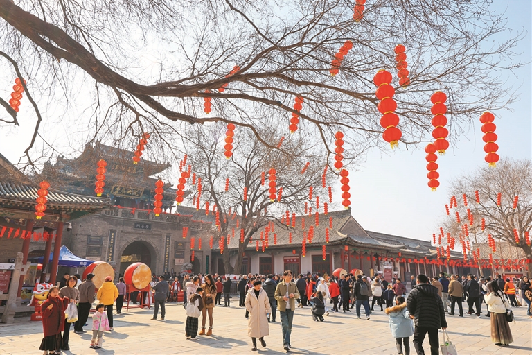 2月17日,游客在运城市李家大院景区参观游览。当日,该景区开展多种形式的传统年俗活动,吸引广大游客赏民俗、游大院,欢度新春佳节。闫 鑫摄