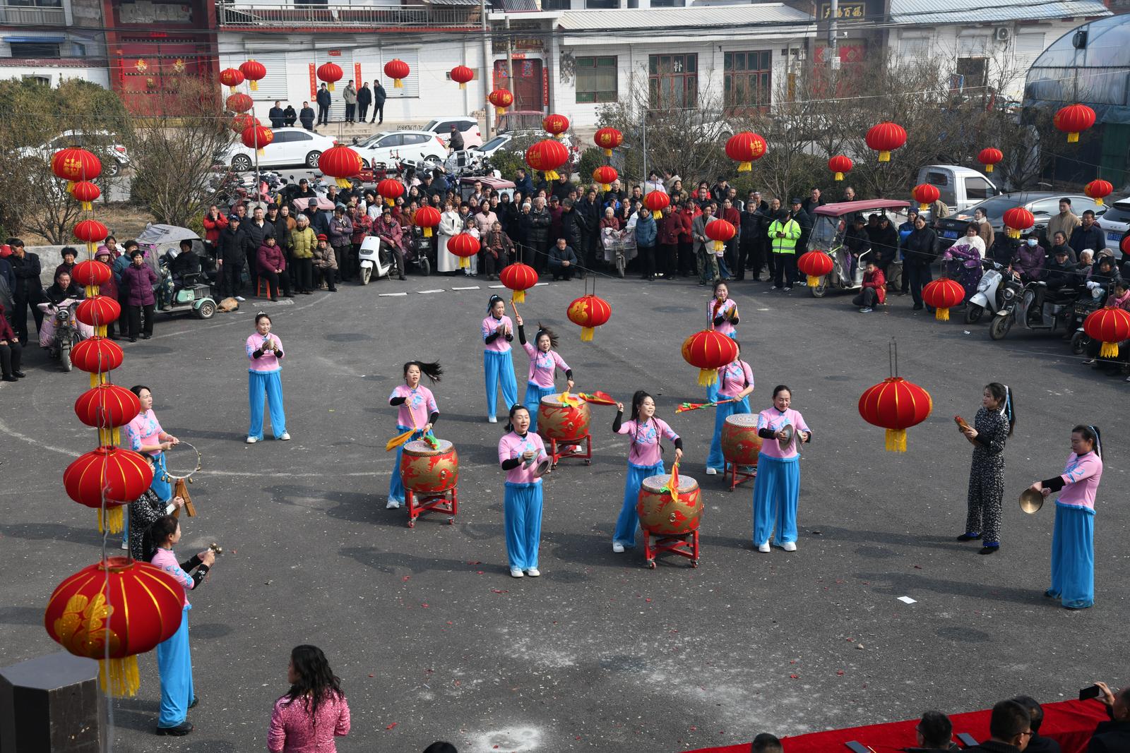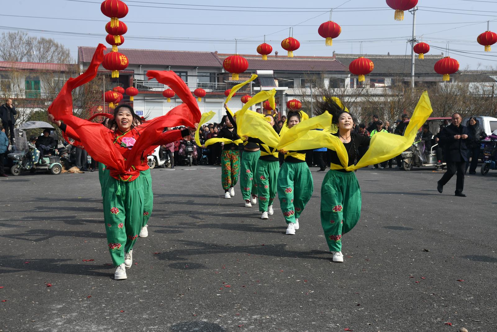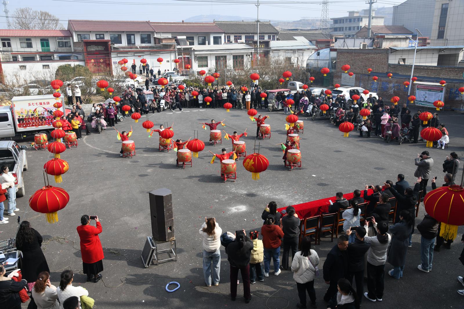2月18日,闻喜县桐城镇西官庄村举办春节文艺演出活动,村民们聚集在村文化活动中心,载歌载舞欢度春节。