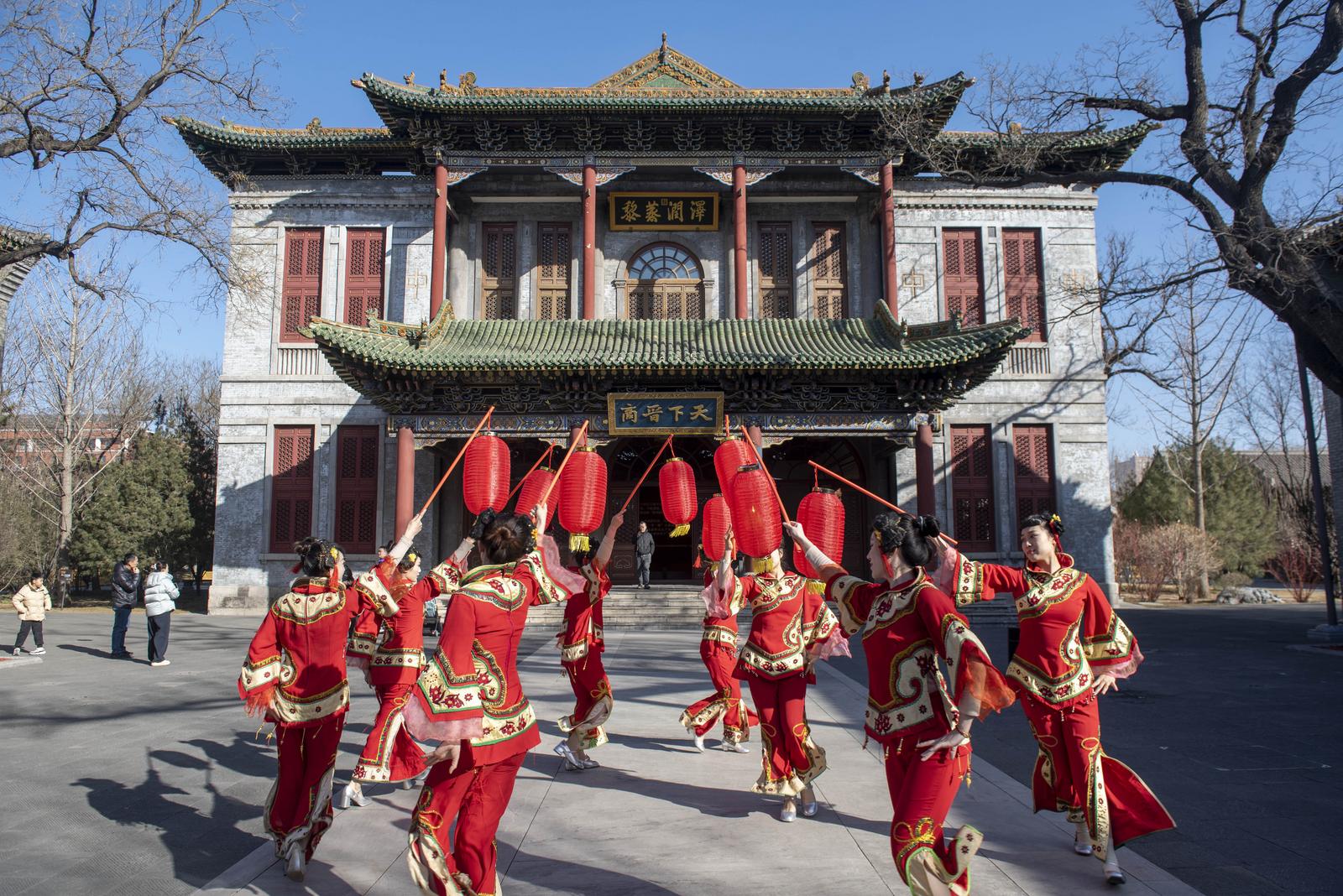 2月18日,游客在运城市后土祠景区游玩。茹雅 摄