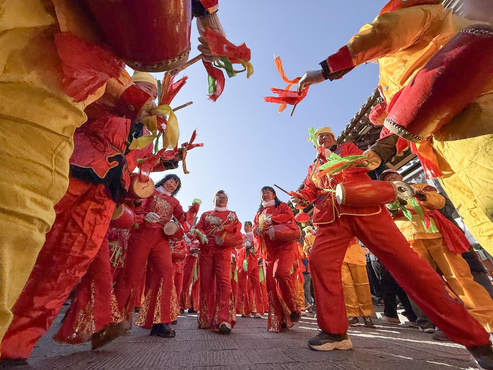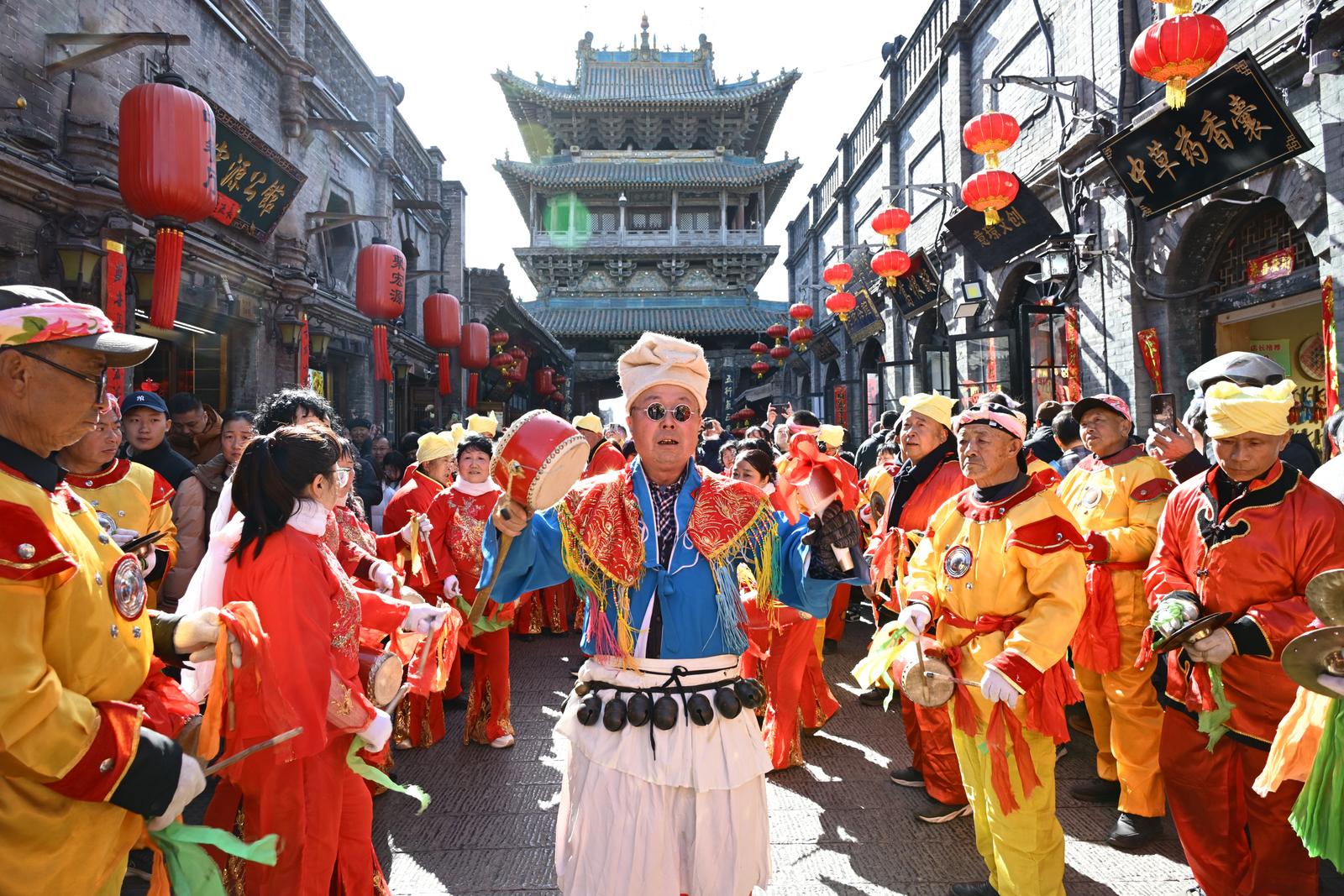 2月19日,平遥古城南大街社火巡演活动热闹喜庆。 王疆华 摄