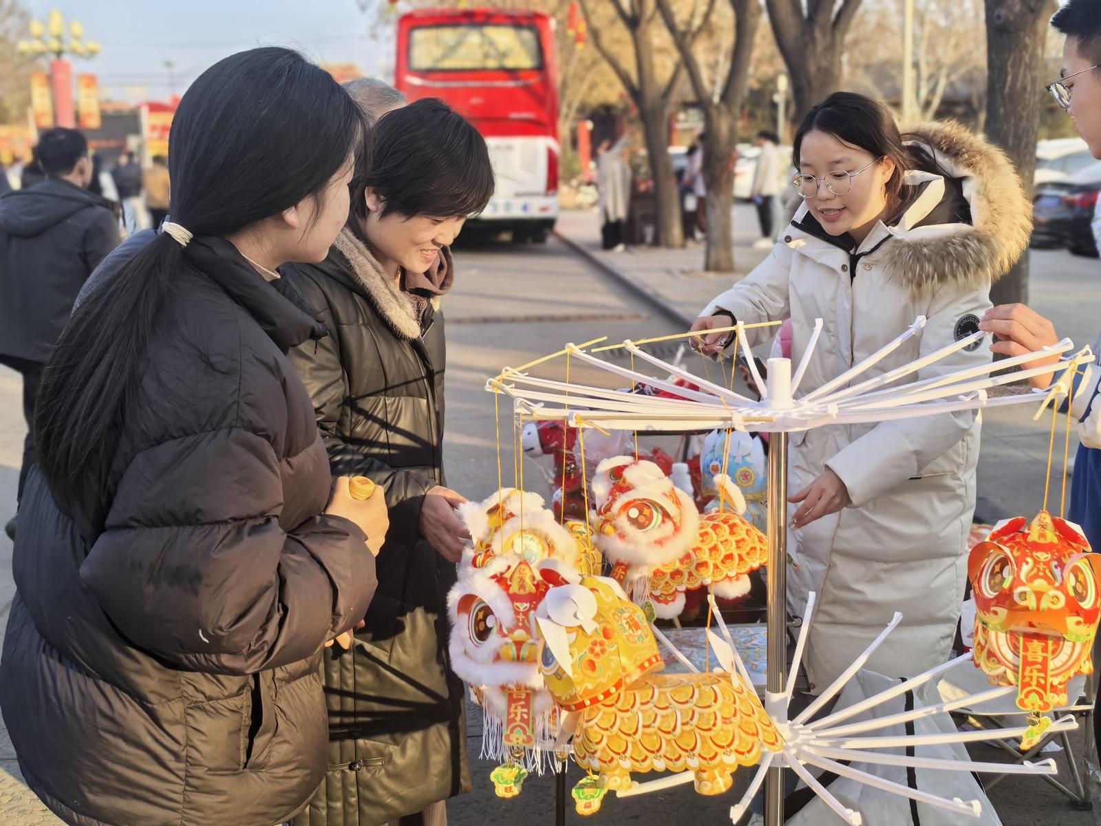2月18日,临汾市尧庙广场,游客在选购喜庆可爱的马年花灯。李天恩 摄