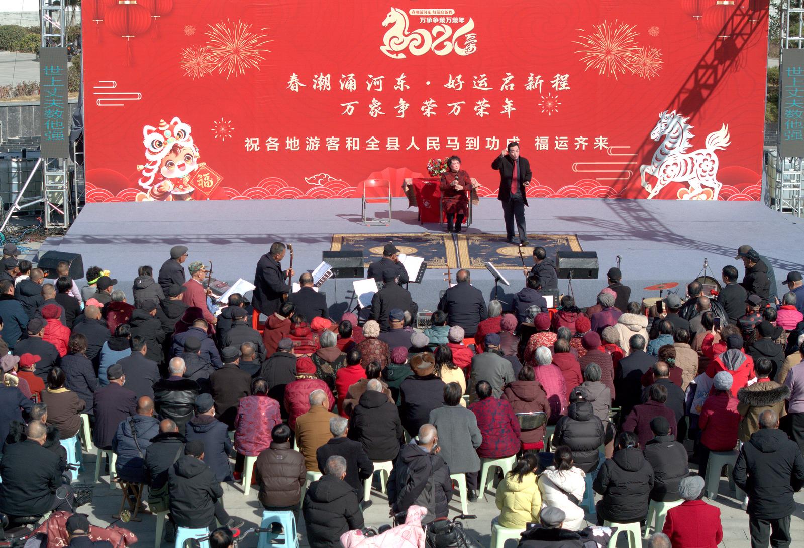 2月19日,万荣县飞云楼景区广场“万象争荣万荣年”新春戏剧专场演出,为游客献上一场热闹喜庆的文化盛宴。 张怀心 摄