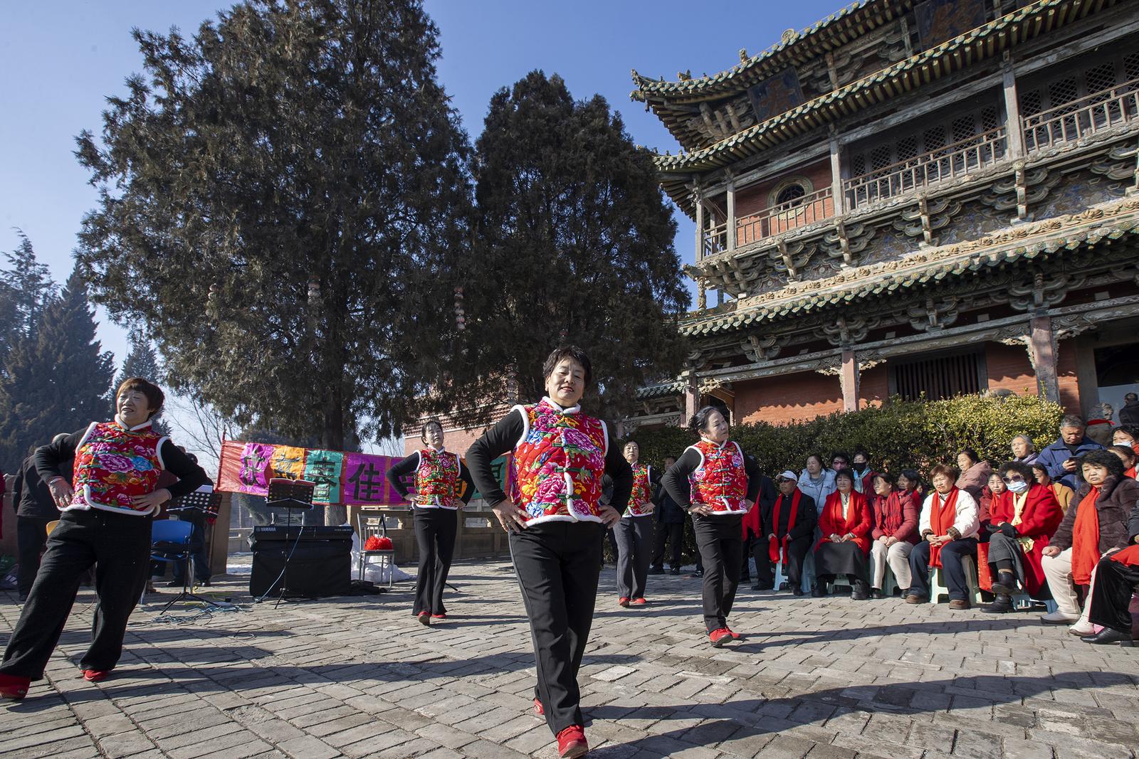 2月17日,晋城陵川崇安寺前合唱团自弹自唱,载歌载舞。王建军 摄