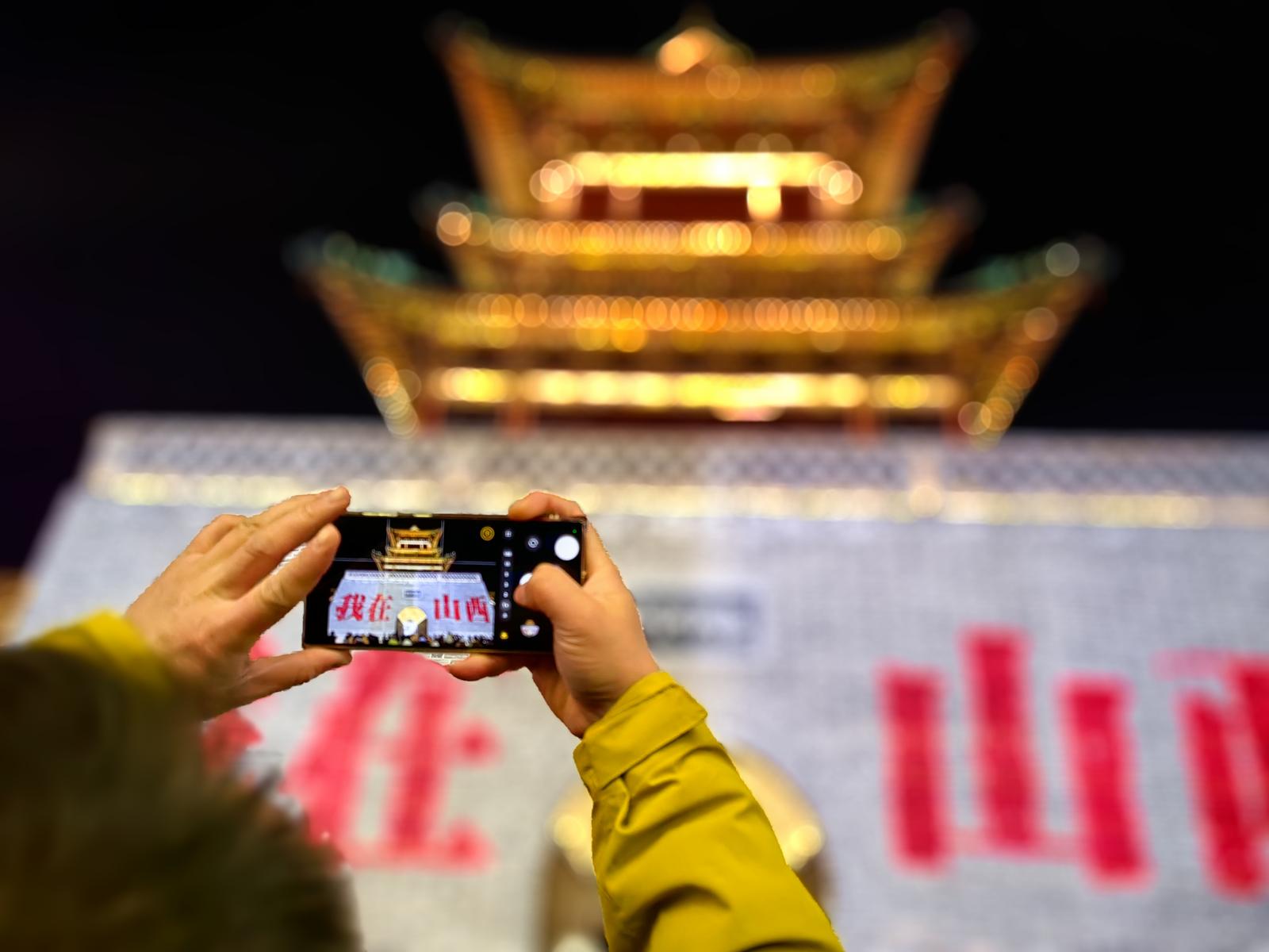 春节期间游客在太原市钟楼街留影,记录新春美好时刻。李艳龙 摄