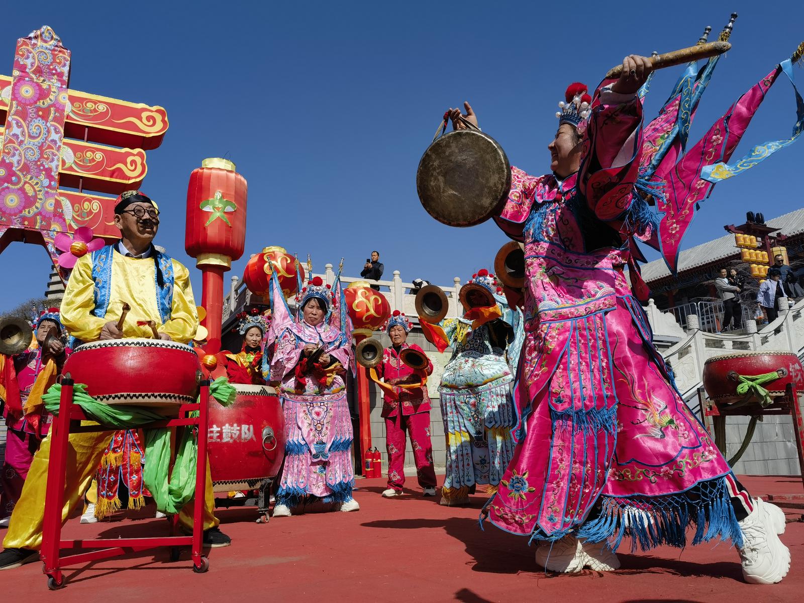 2月18日,运城市绛县电影院广场,南樊镇民俗表演队进行精彩演出。金玉敏 摄