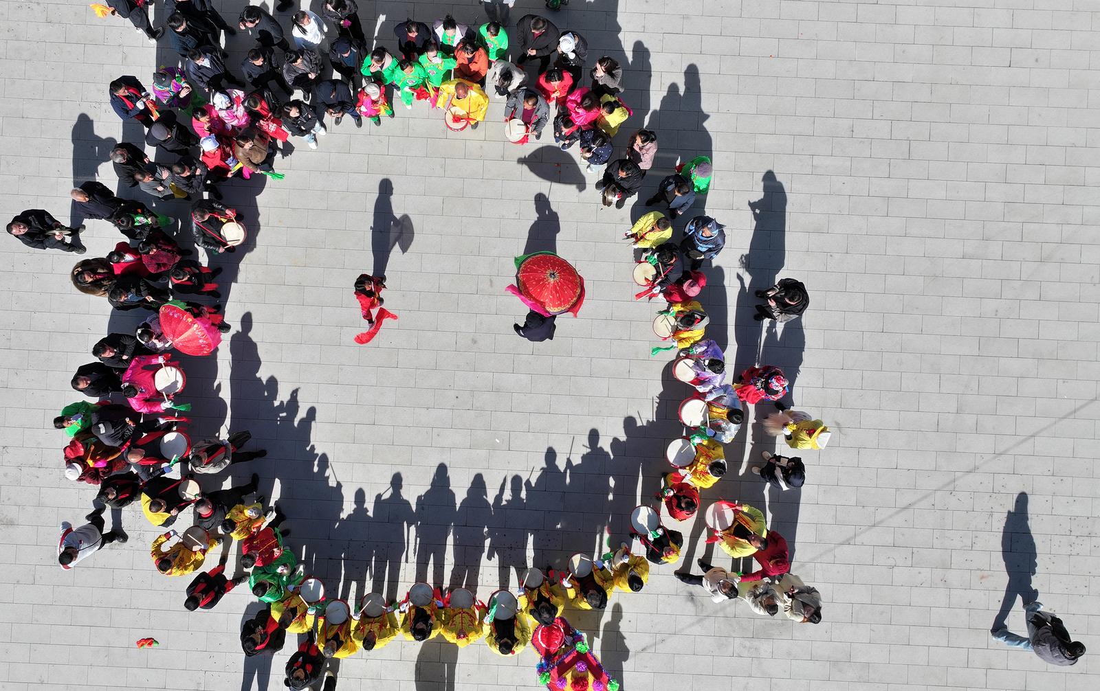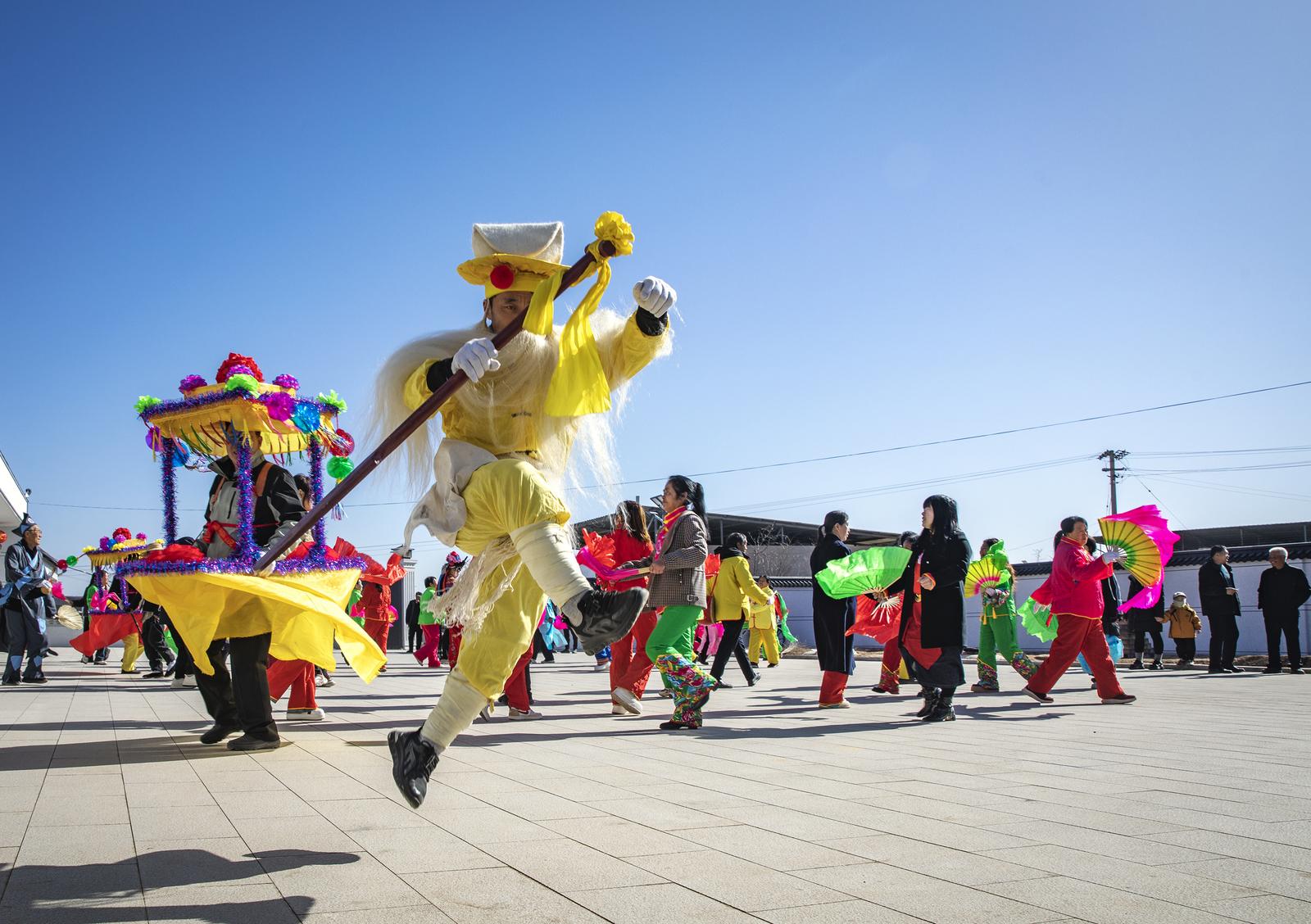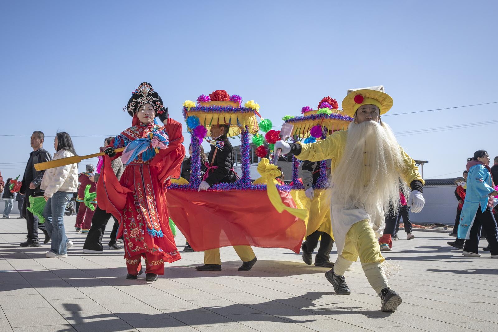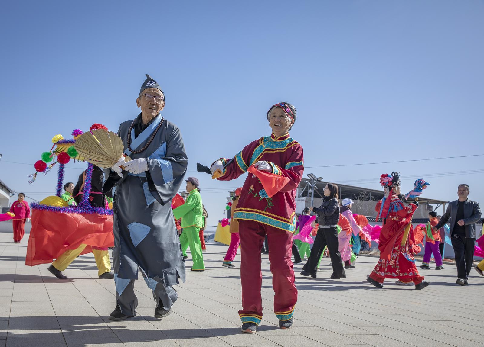 2月19日,吕梁市柳林县高家沟乡大成垣村年味正浓。村民们身着节日盛装,踩着欢快的鼓点,扭起传统的水船秧歌。艄公执桨划船,村民们翩翩起舞,用一场热闹喜庆的“秧歌拜年”,舞出了浓浓的年味。