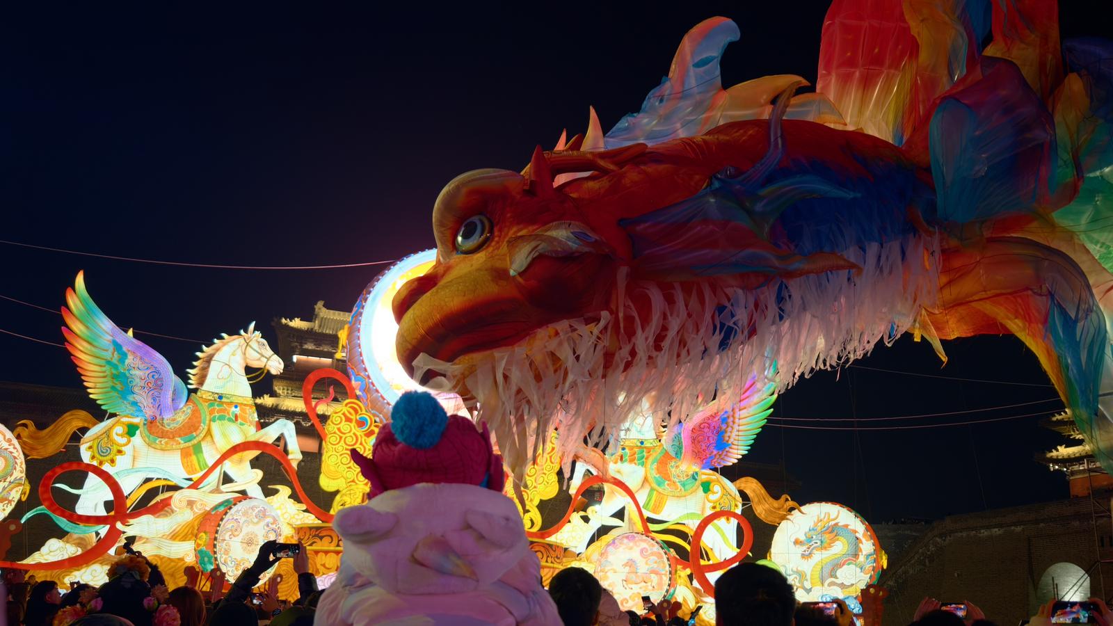 大同古城花灯璀璨,年味拉满
