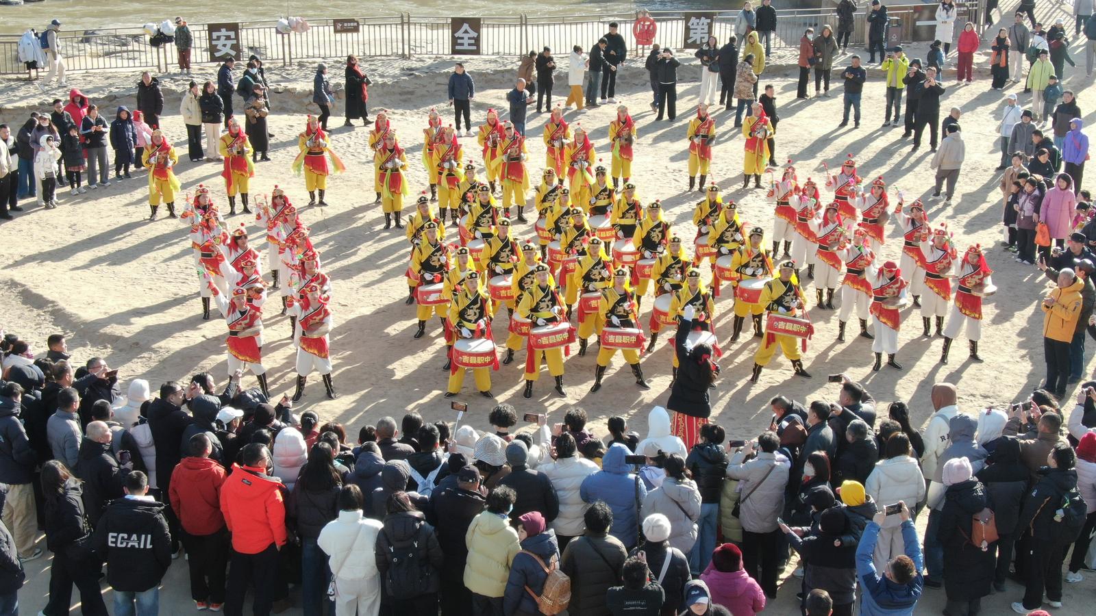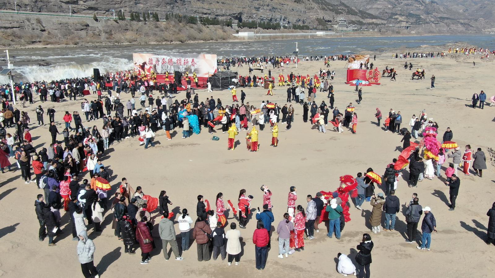 壶口瀑布景区锣鼓喧天闹新春