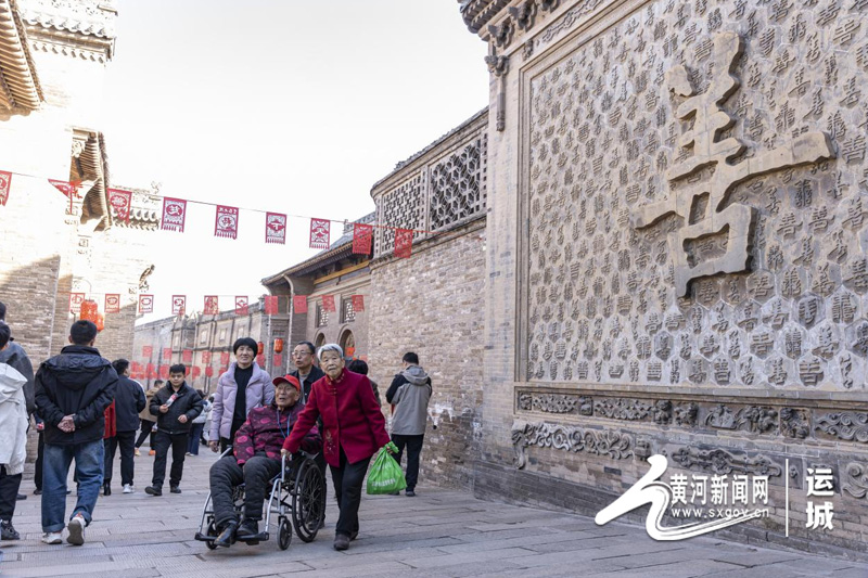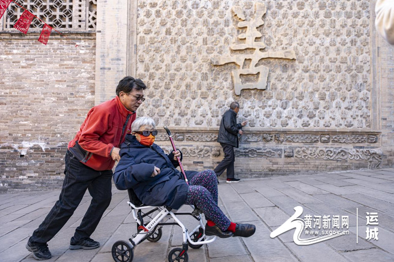 不远处,一位推着轮椅的中年男子放慢脚步。“老人年龄大了,过年想推着她出来走走。”来自陕西渭南的张先生说着,俯身向轮椅上的母亲介绍墙上的“善”字。老人微微点头,目光在那些镌刻的青砖上停留许久。百善孝为先——这一瞬,墙上的“善”与眼前的孝,仿佛有了无声的呼应。