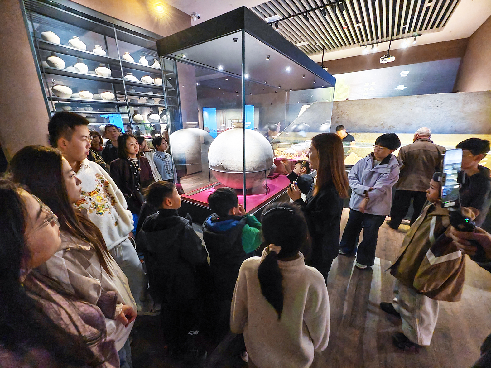 2月21日,运城市万荣博物馆讲解员以物叙史,给前来参观的游客介绍馆藏陈列文物,今年春节期间“博物馆里过大年”成为新风尚。当地市民和八方游客有序走万荣进博物馆,触摸历史温度,感知文脉绵延。