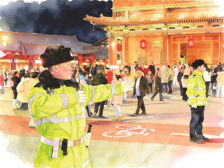 夜幕渐深,游客陆续走下城墙;车流回落,警灯却始终闪烁,成为大同古都灯会最耀眼、最深刻的底色。