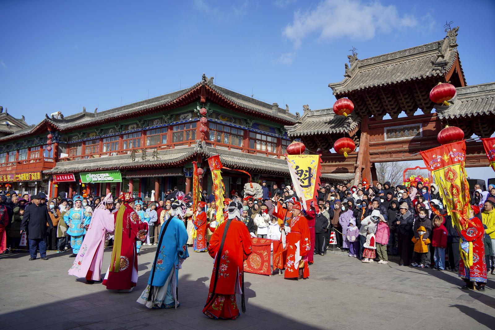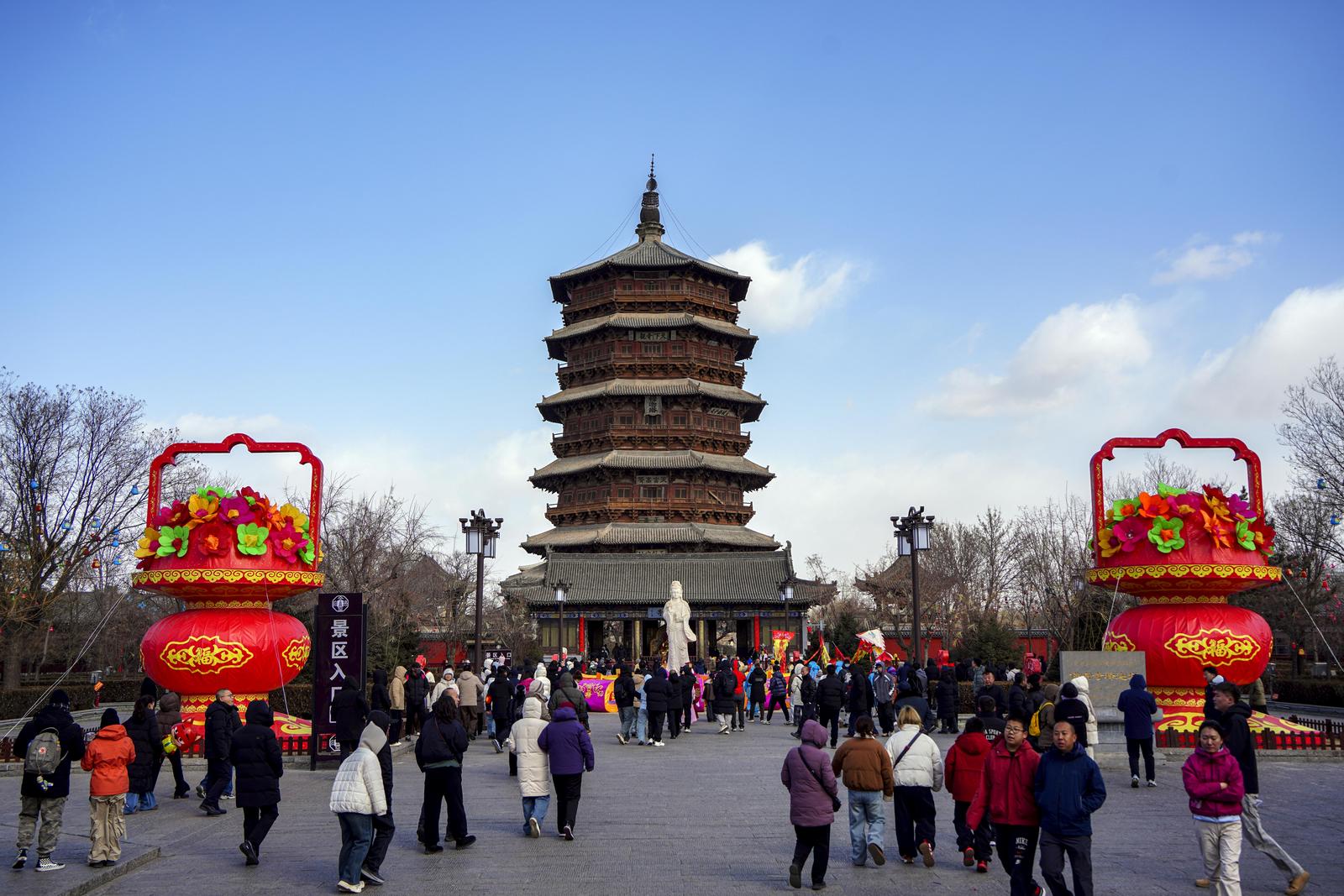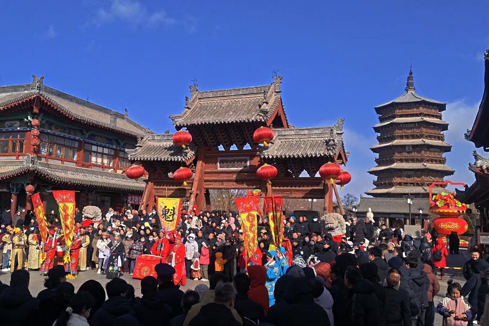 2月22日,朔州应县木塔景区推出《魁星点斗》《神农采药》等民俗情景剧,由应县青年耍孩儿剧团演绎。剧目以“耍孩儿”非遗唱腔再现历史典故,结合木塔文物元素传递祈福愿景 。演出在木塔周边吸引了广大游客的青睐,让游客沉浸式感受古建魅力。