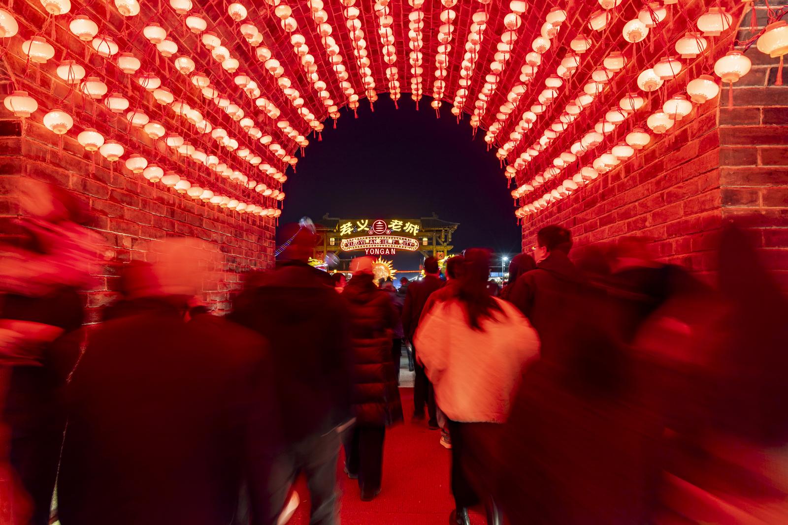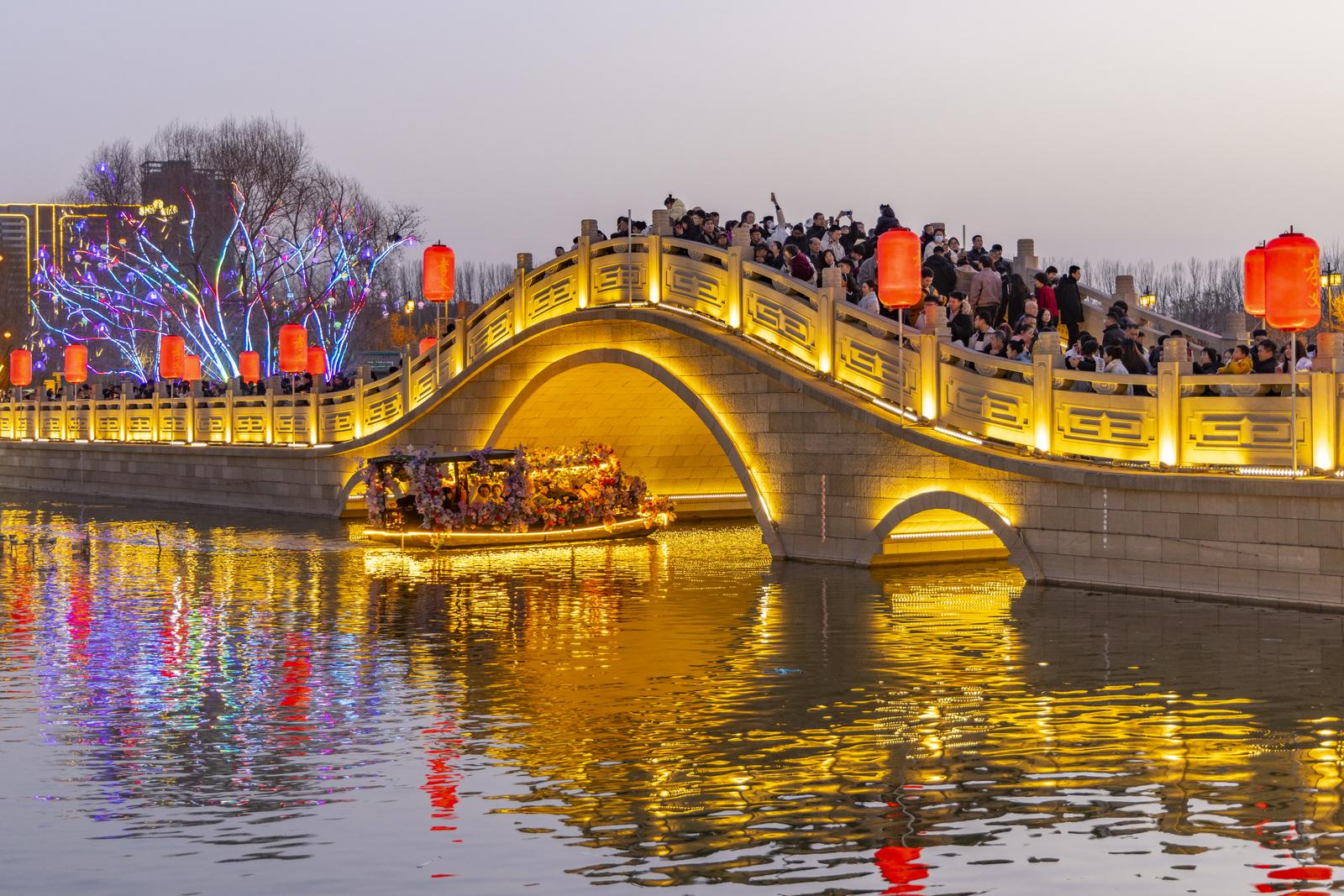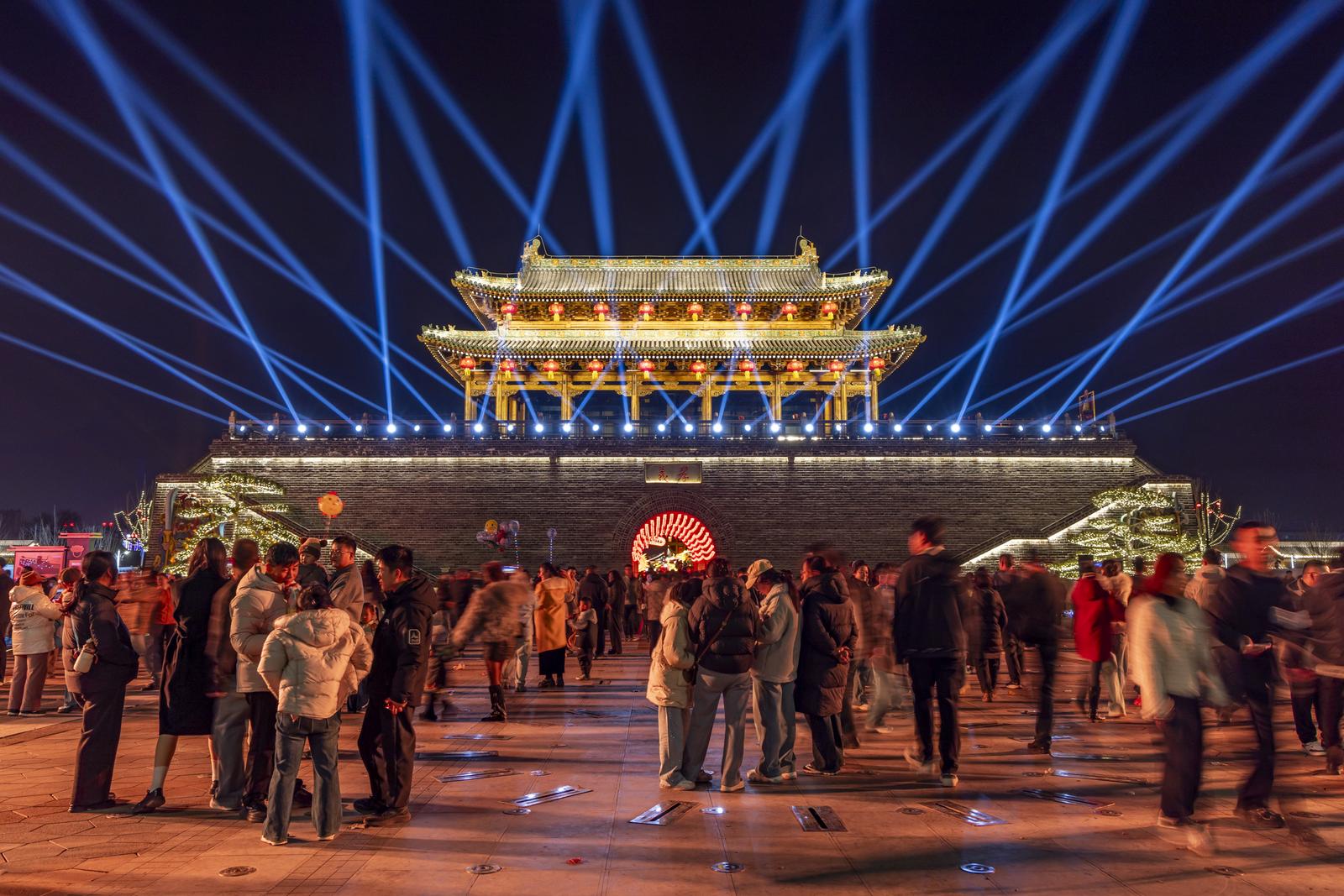 春节期间,吕梁孝义老城游人如织,游客们体验花船游湖,看城墙灯光秀。打铁花、焰火在南化湖展现,老城的火树银花不夜天,让游客们体会到了红红火火的中国年。